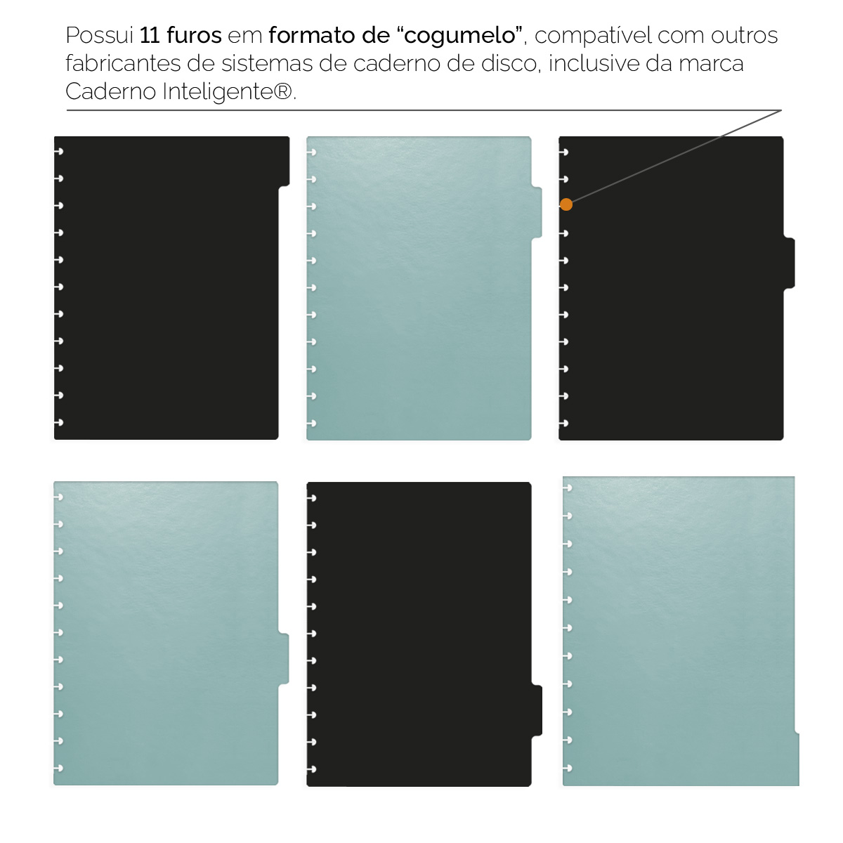 Divisórias Iscool Para Caderno de Disco Solid Metallic Preto e Verde Oceano