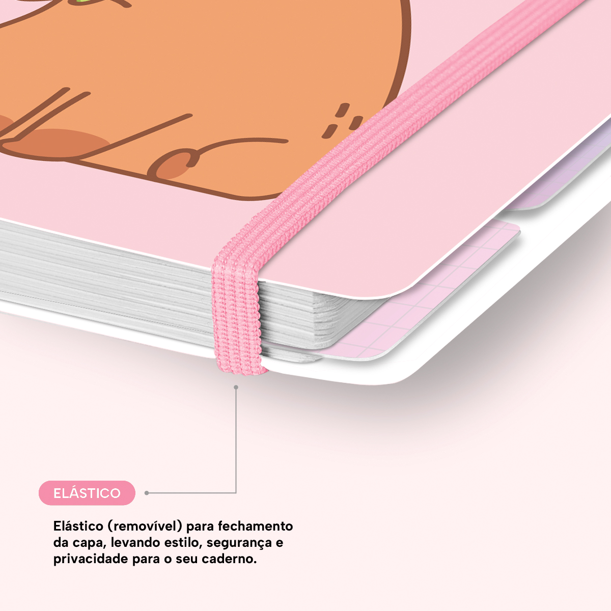 Elástico para fechamento da capa do caderno.