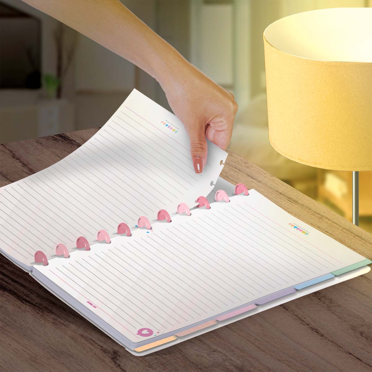 Um caderno totalmente customizável, no qual todos os elementos são reposicionáveis. Você pode montá-lo como preferir, deixando rolar solta toda sua criatividade.