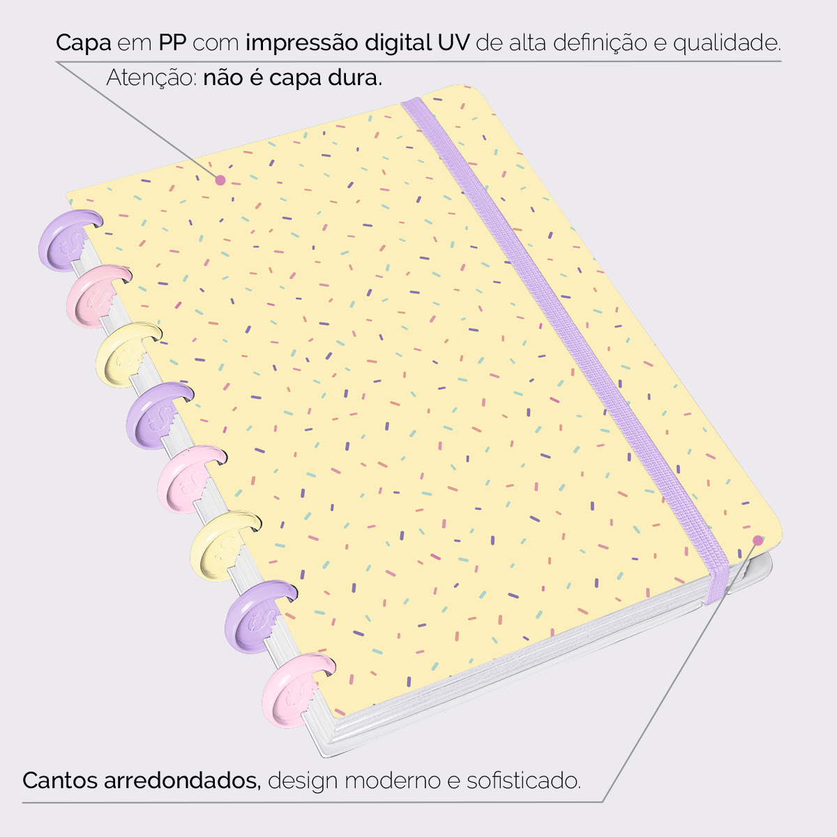 A capa é feita em PP com impressão digital UV de alta definição, acompanha 4 lindas divisórias, que você pode colocar em qualquer local do caderno, funcionando como o guia perfeito para sua organização.