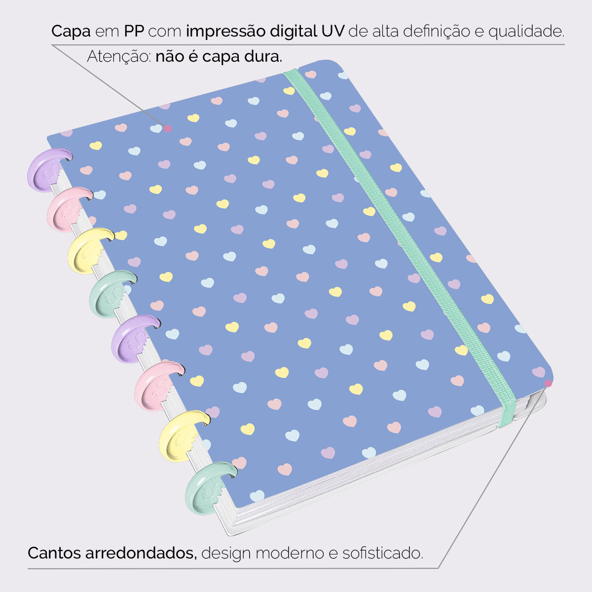 Um caderno totalmente customizável, no qual todos os elementos são reposicionáveis. Você pode montá-lo como preferir, deixando rolar solta toda sua criatividade.