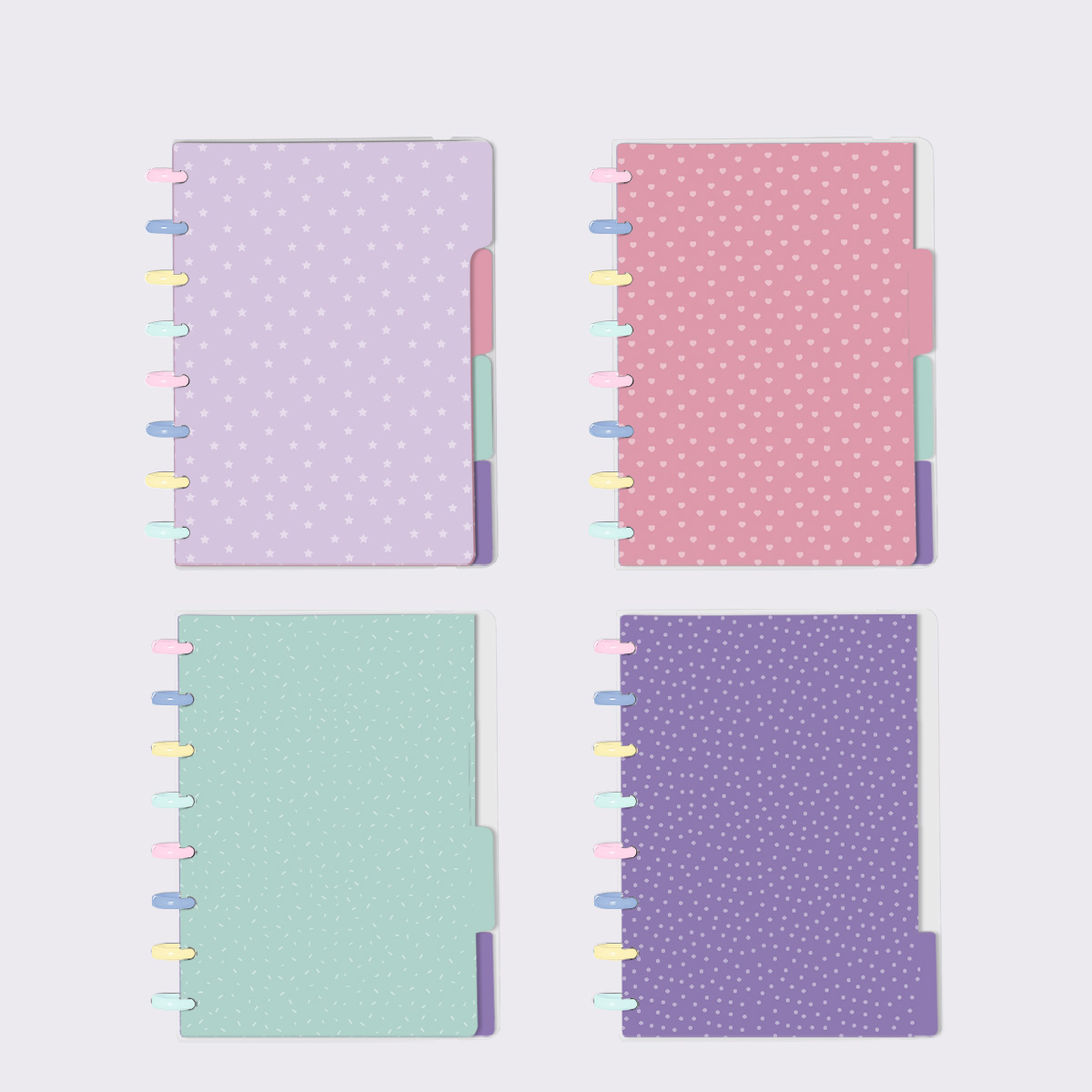 Os nossos discos são fabricados em polímero de nylon e/ou policarbonato, podem ser substituídos, proporcionando imensa variedade na combinação das cores, qualidade no acabamento e eficácia no encaixe das capas, folhas e acessórios.