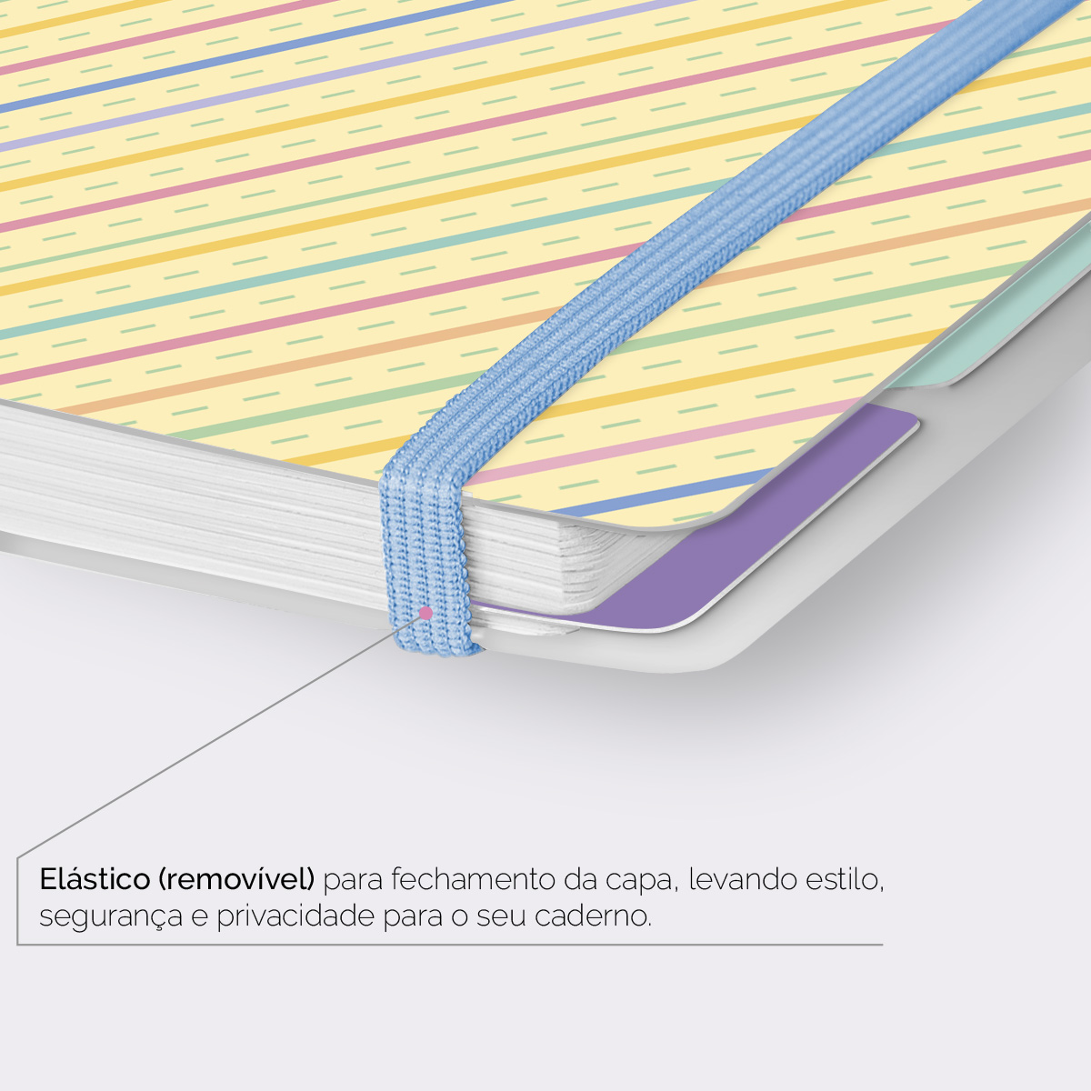 Elástico para fechamento da capa do caderno.