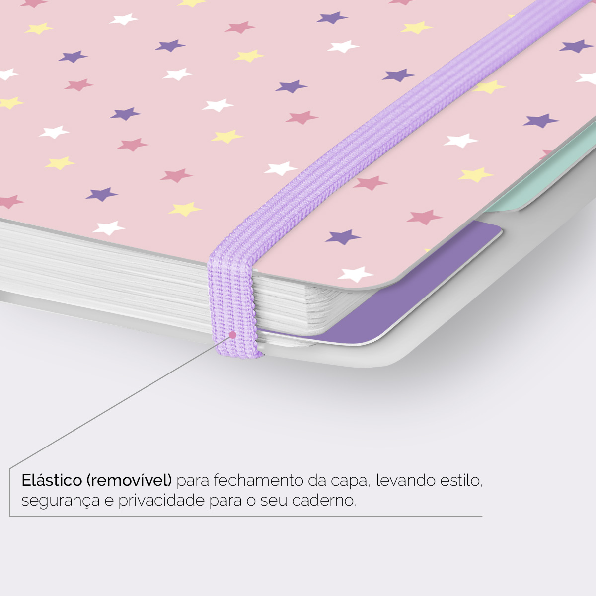 O miolo conta com 60 folhas pautadas decoradas em papel sulfite 90g, (aquele papel mais “grossinho”) para que você use e abuse das suas canetas especiais e 20 folhas em branco, ideais para explorar seu lado mais criativo.