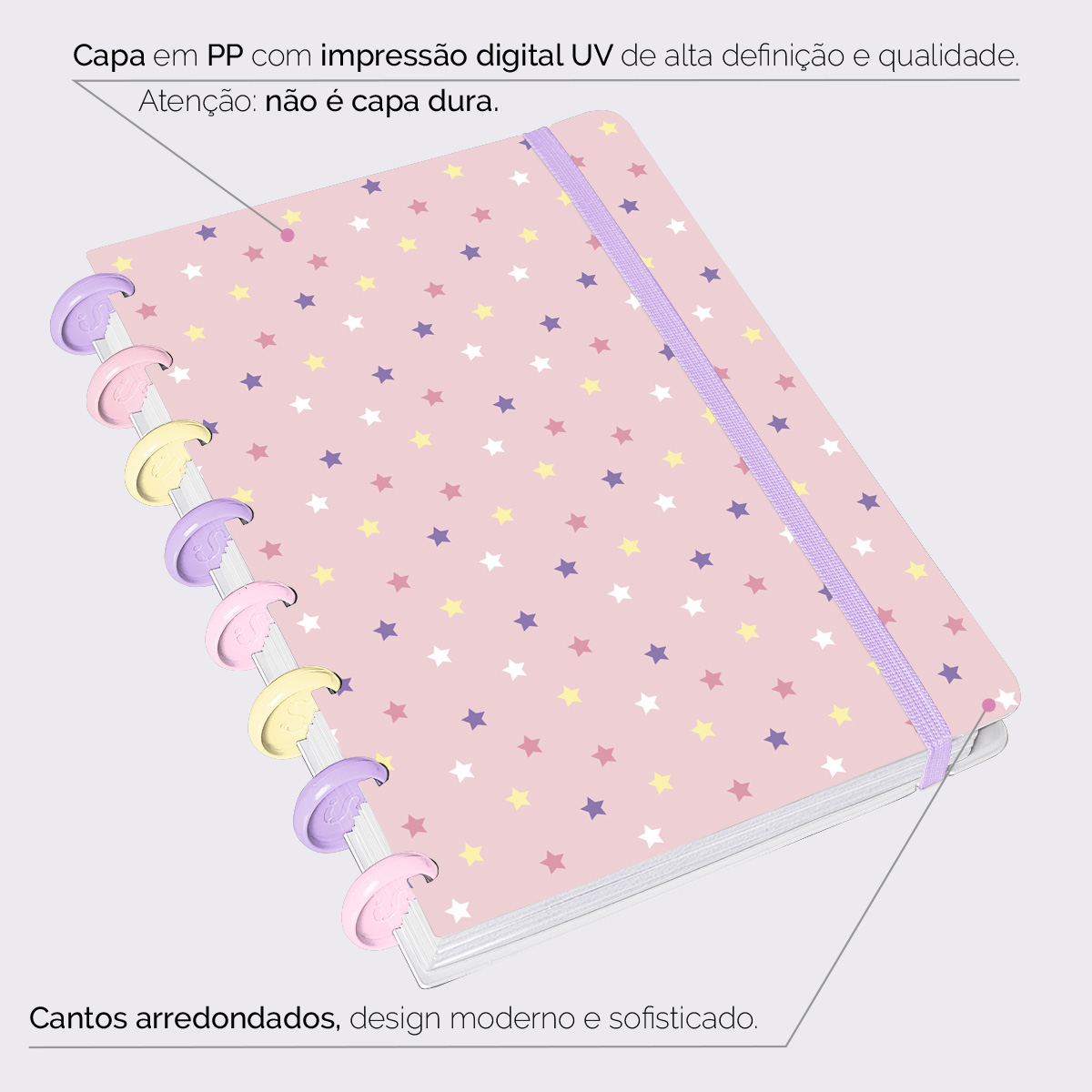 A capa é feita em PP com impressão digital UV de alta definição, acompanha 4 lindas divisórias, que você pode colocar em qualquer local do caderno, funcionando como o guia perfeito para sua organização.