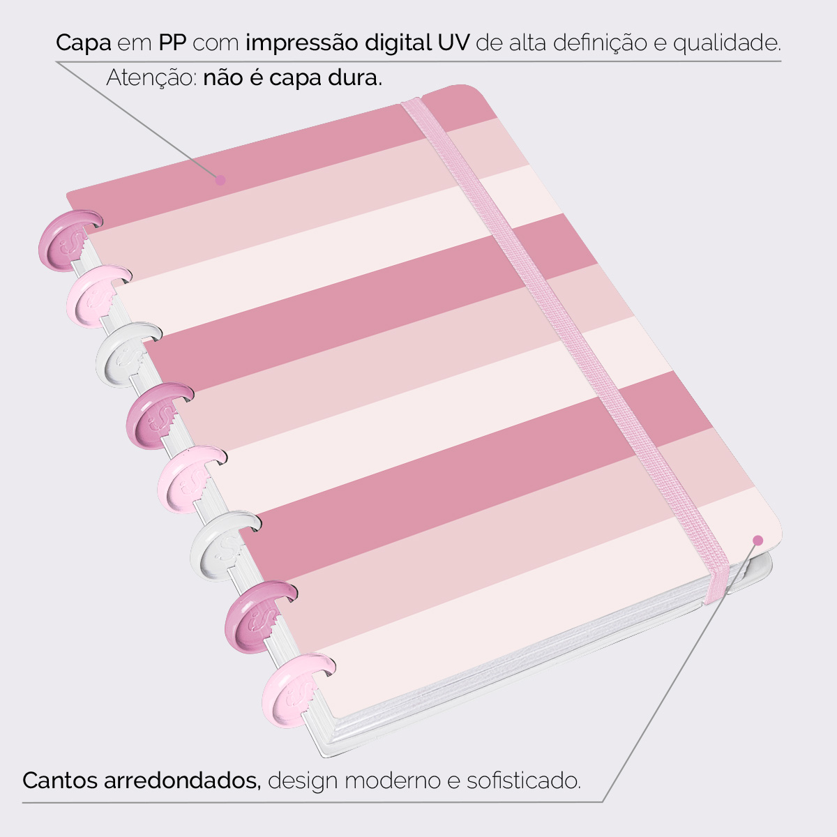 Um caderno totalmente customizável, no qual todos os elementos são reposicionáveis. Você pode montá-lo como preferir, deixando rolar solta toda sua criatividade.