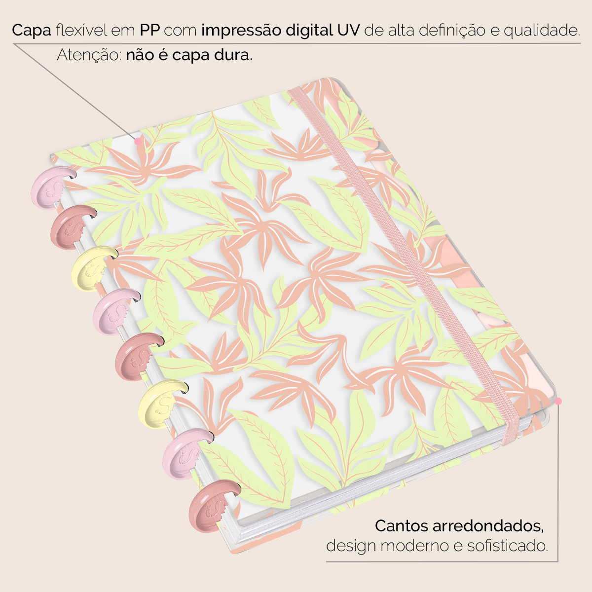Um caderno totalmente customizável, no qual todos os elementos são reposicionáveis. Você pode montá-lo como preferir, deixando rolar solta toda sua criatividade.