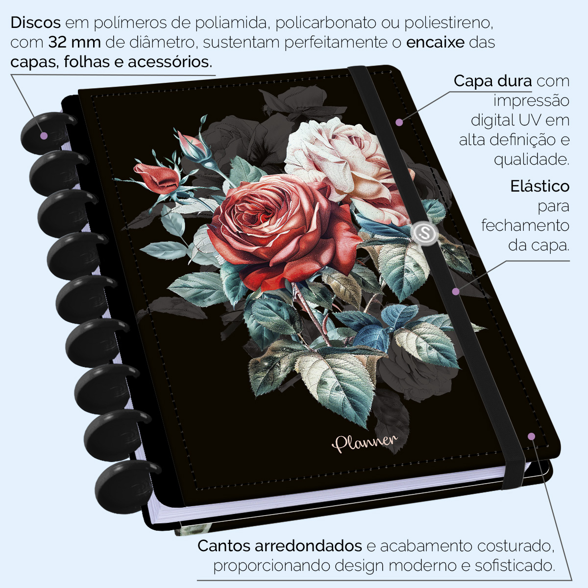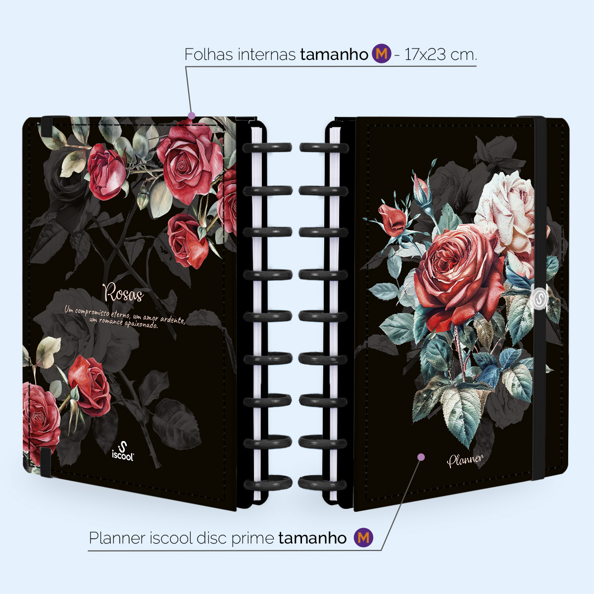 Iscool Disc Planner Permanente Floriografia Rosa Preto