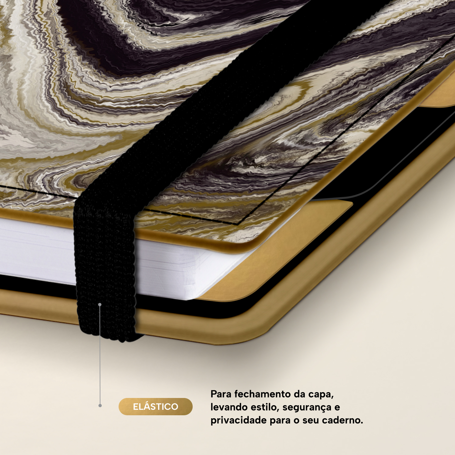 Elástico para fechamento da capa do caderno.