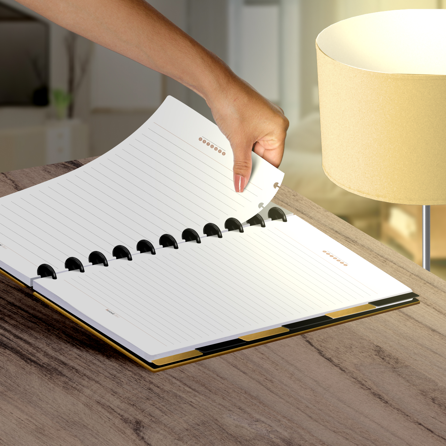 Um caderno totalmente customizável, no qual os elementos são reposicionáveis. Você pode montá-lo como preferir, deixando rolar solta toda a sua criatividade.