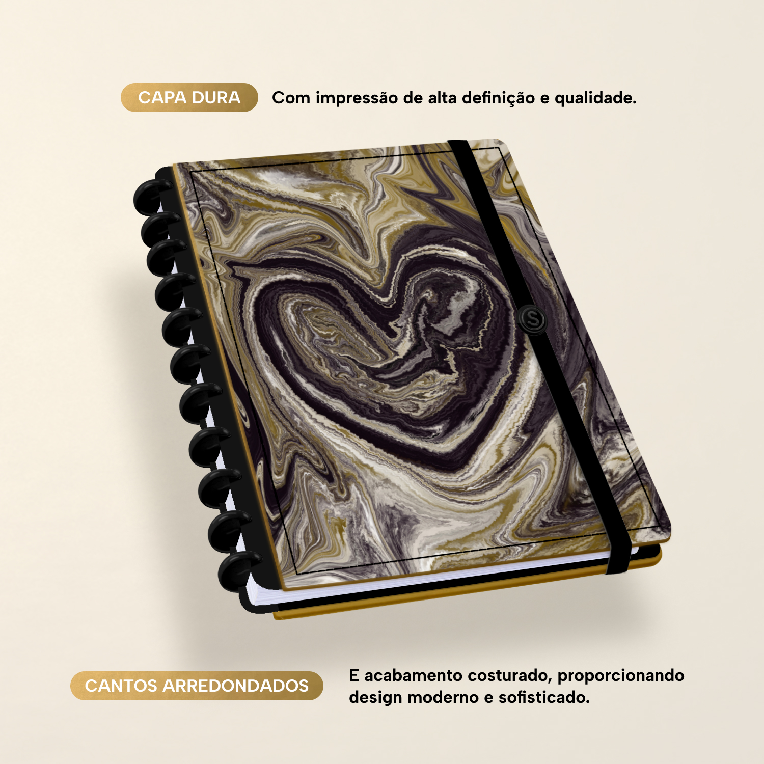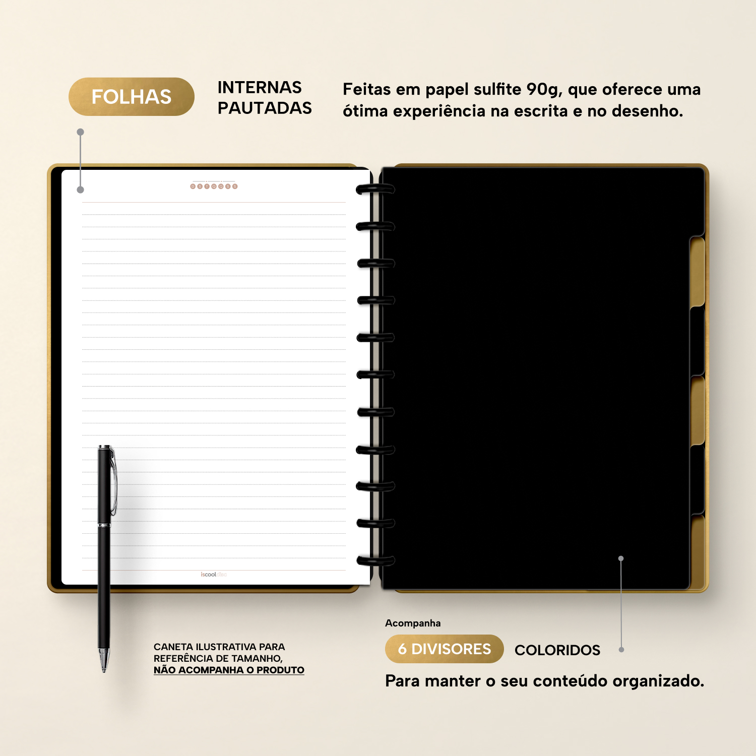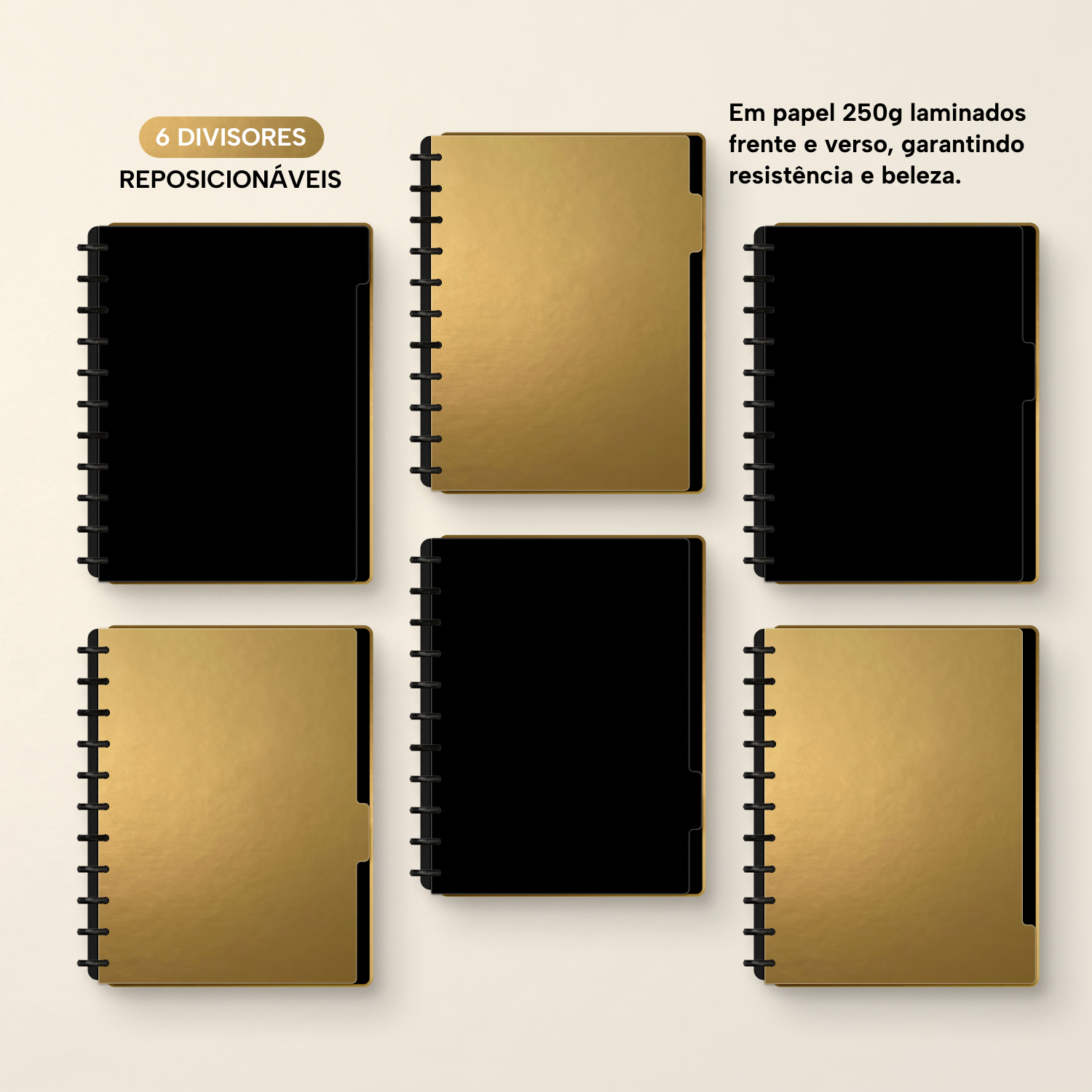 A capa é dura, com impressão digital de alta definição, e acompanha 6 lindas divisórias que você pode colocar em qualquer local do caderno, funcionando como o guia perfeito para sua organização.