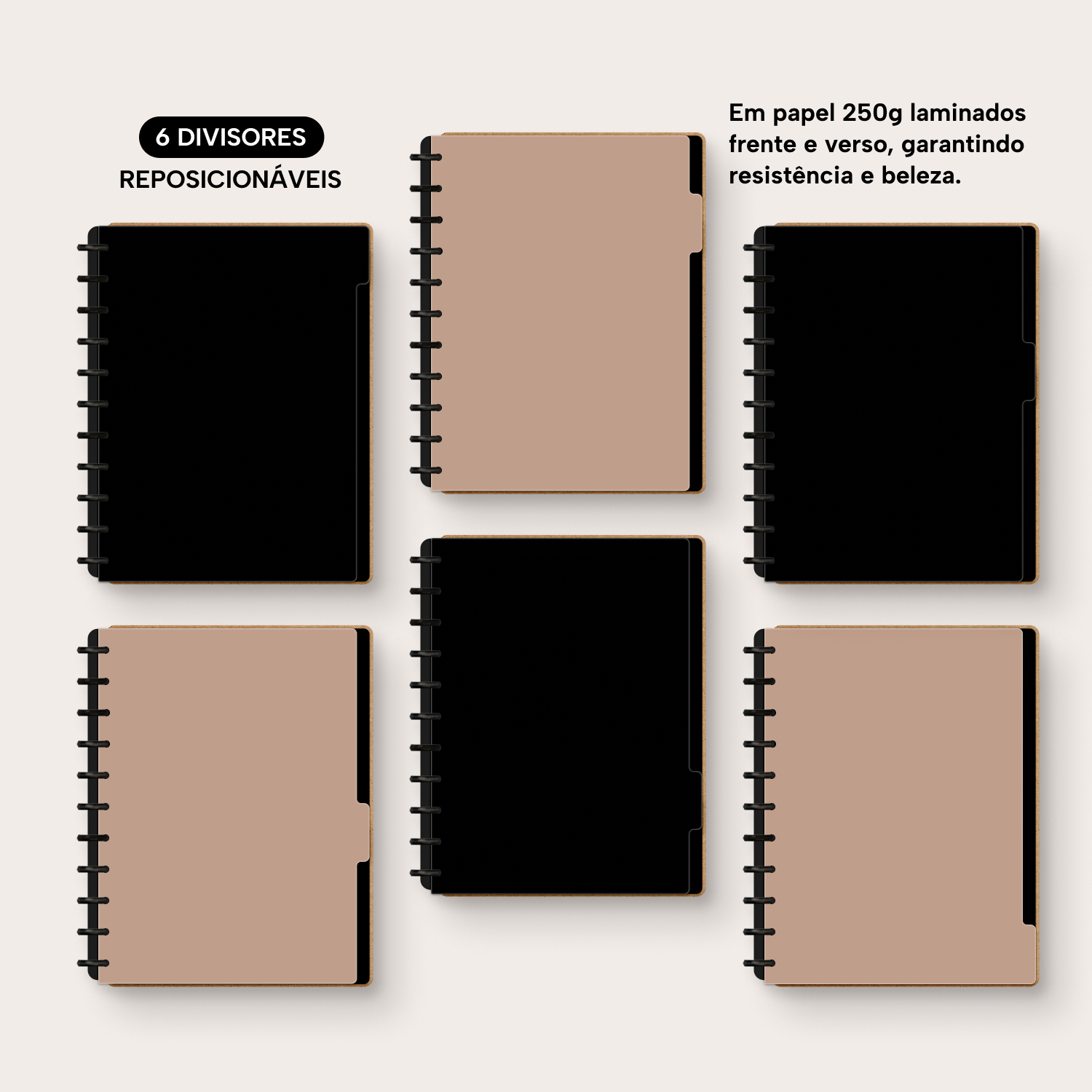 6 divisores laminados (frente e verso) em papel 250g.