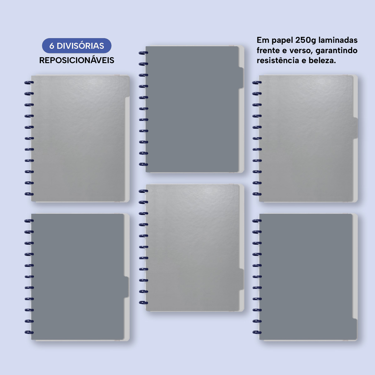 6 divisores laminados (frente e verso) em papel 250g.
