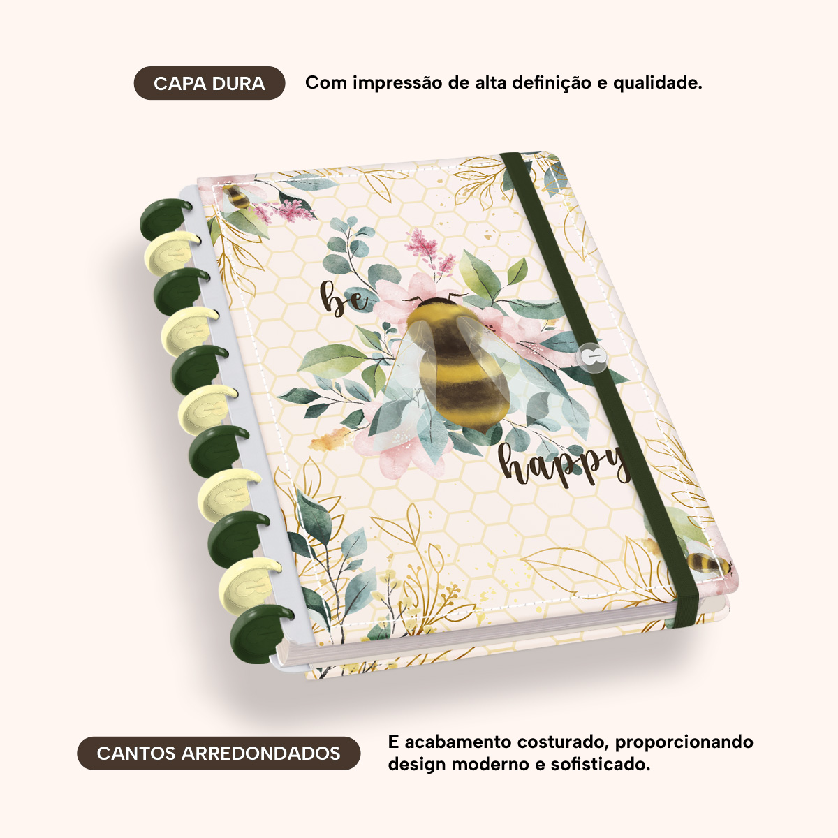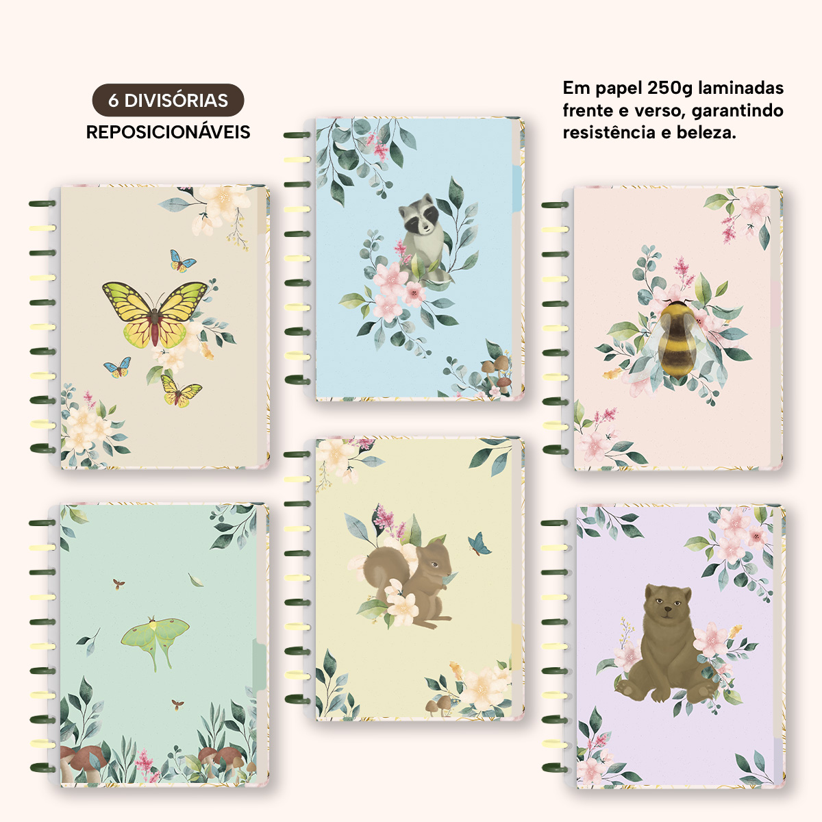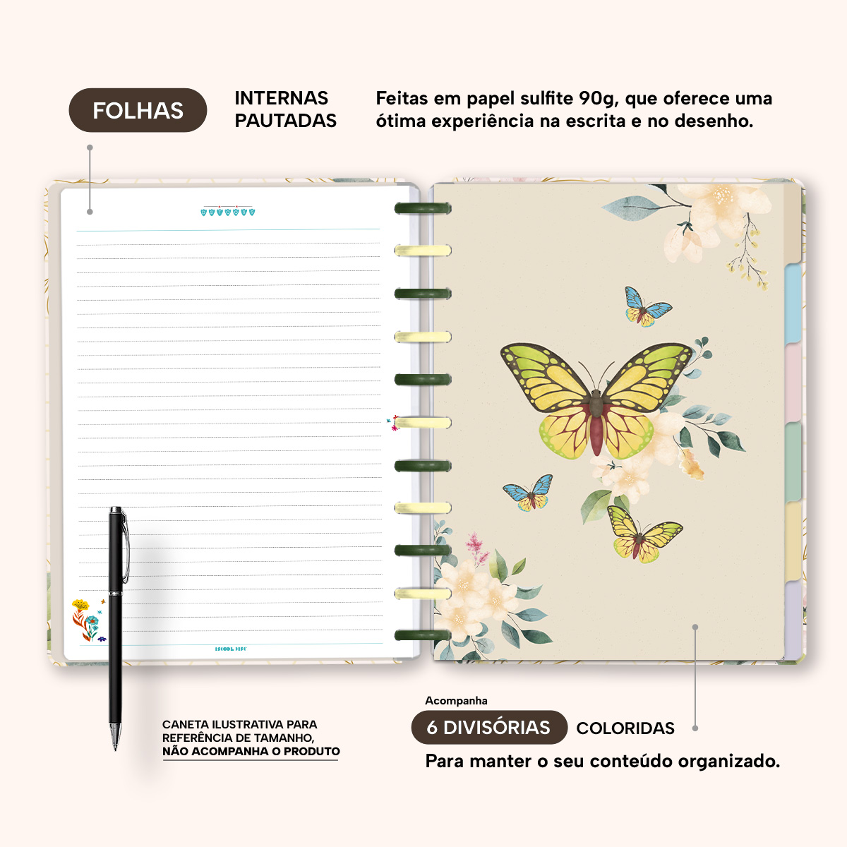 A capa é dura com impressão digital de alta definição, acompanha 6 lindas divisórias que você pode colocar em qualquer local do caderno, funcionando como o guia perfeito para sua organização.