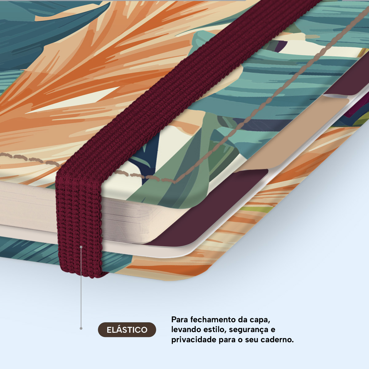 Elástico para fechamento da capa do caderno.