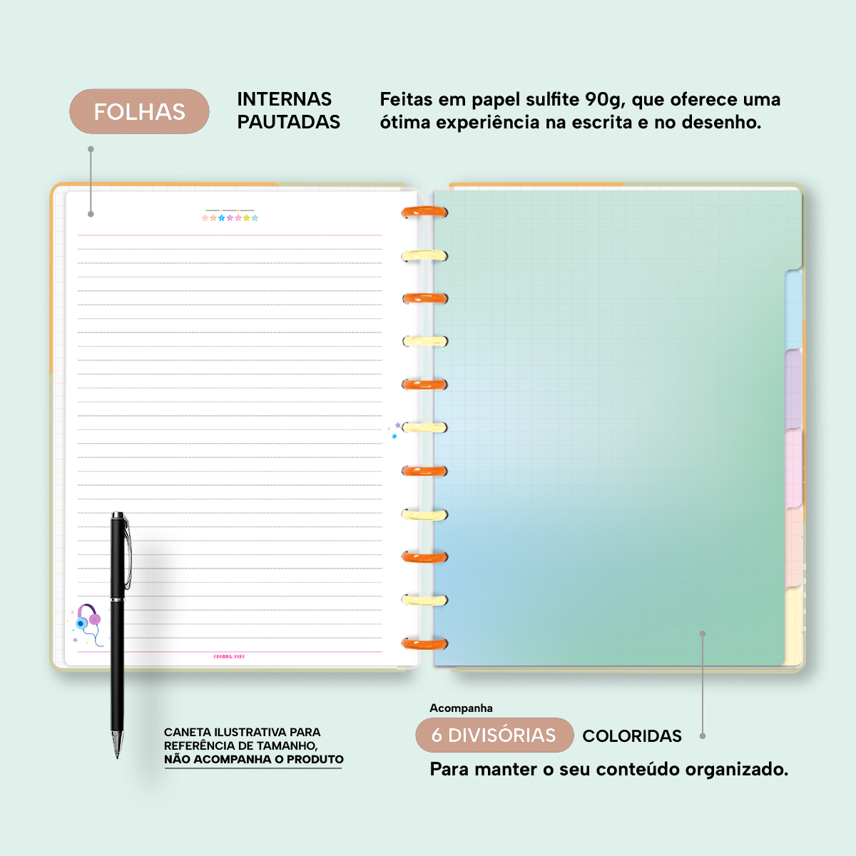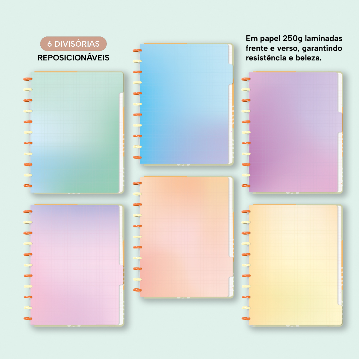 A capa é dura com impressão digital de alta definição, acompanha 6 lindas divisórias que você pode colocar em qualquer local do caderno, funcionando como o guia perfeito para sua organização.