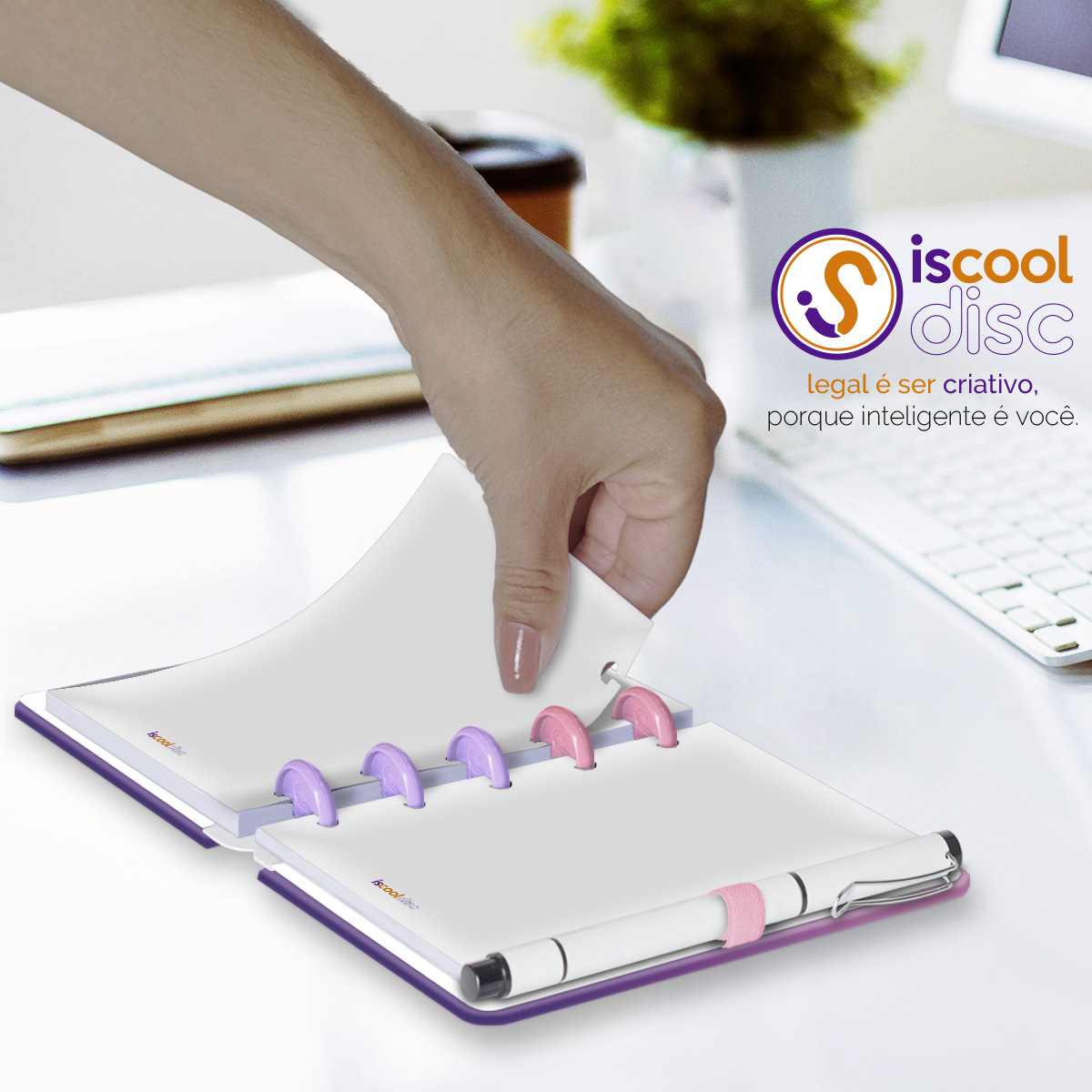 Além de tudo isso, o iscooldisc Prime Blackout, conta com detalhezinhos que fazem toda diferença: elástico para fechamento da capa, muito mais estilo e privacidade para suas anotações; bolsa plástica para guardar seus rascunhos, referências, lembretes, documentos e uma cartela de adesivos incríveis, para que você possa personalizar seu caderno do seu jeitinho!