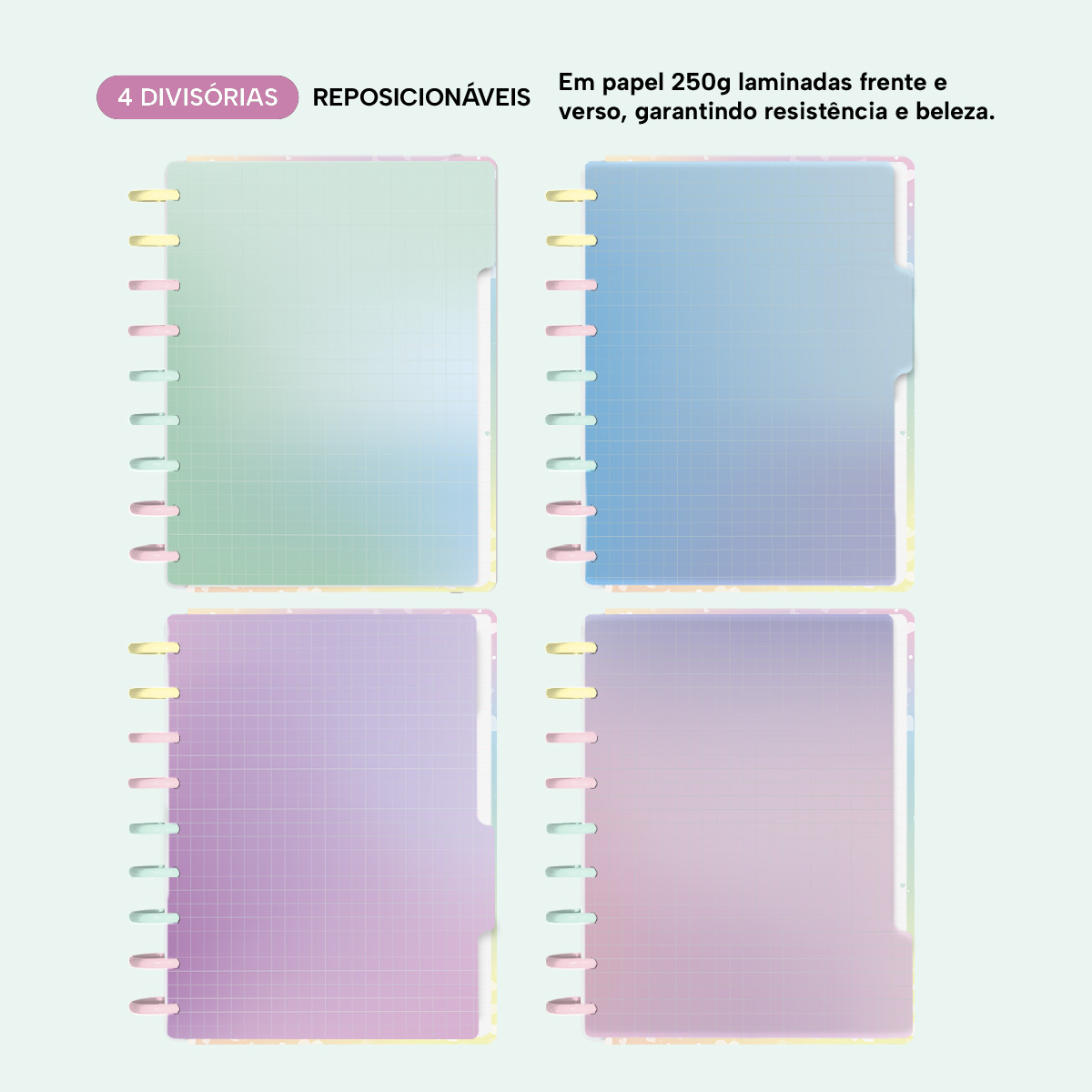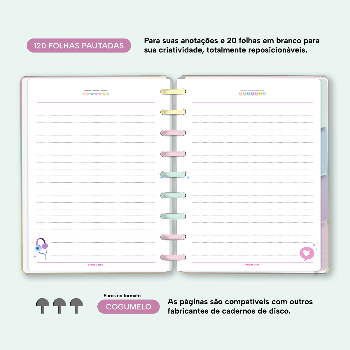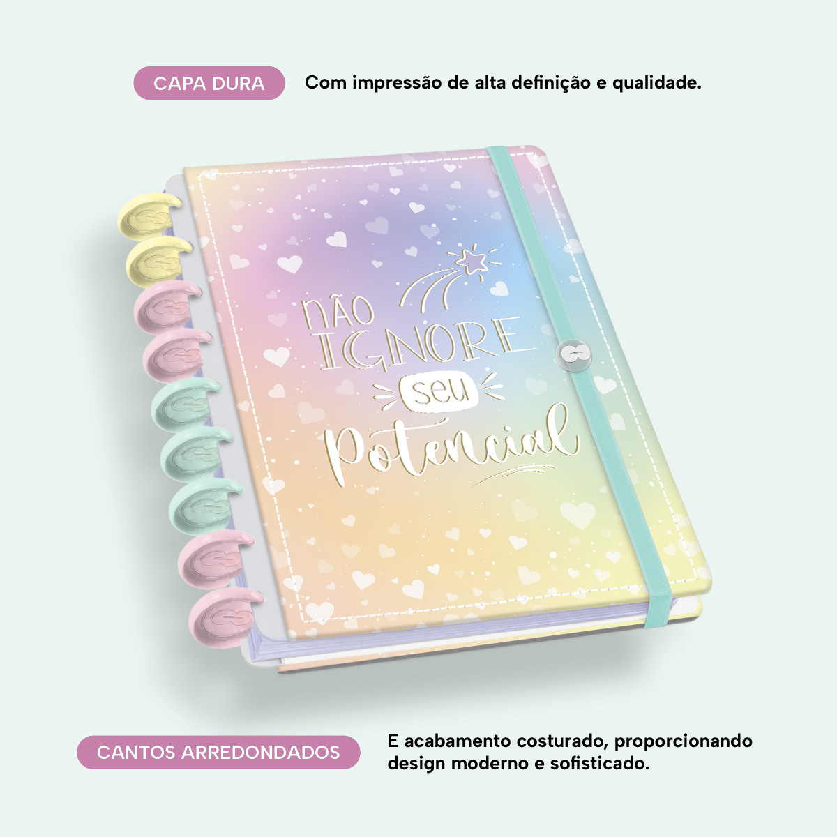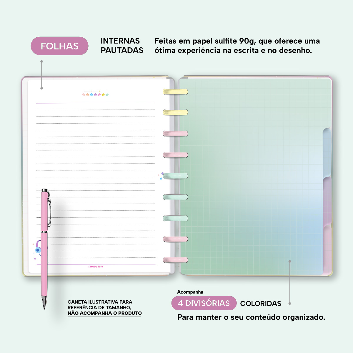 A capa é dura com impressão digital de alta definição, acompanha 6 lindas divisórias que você pode colocar em qualquer local do caderno, funcionando como o guia perfeito para sua organização.