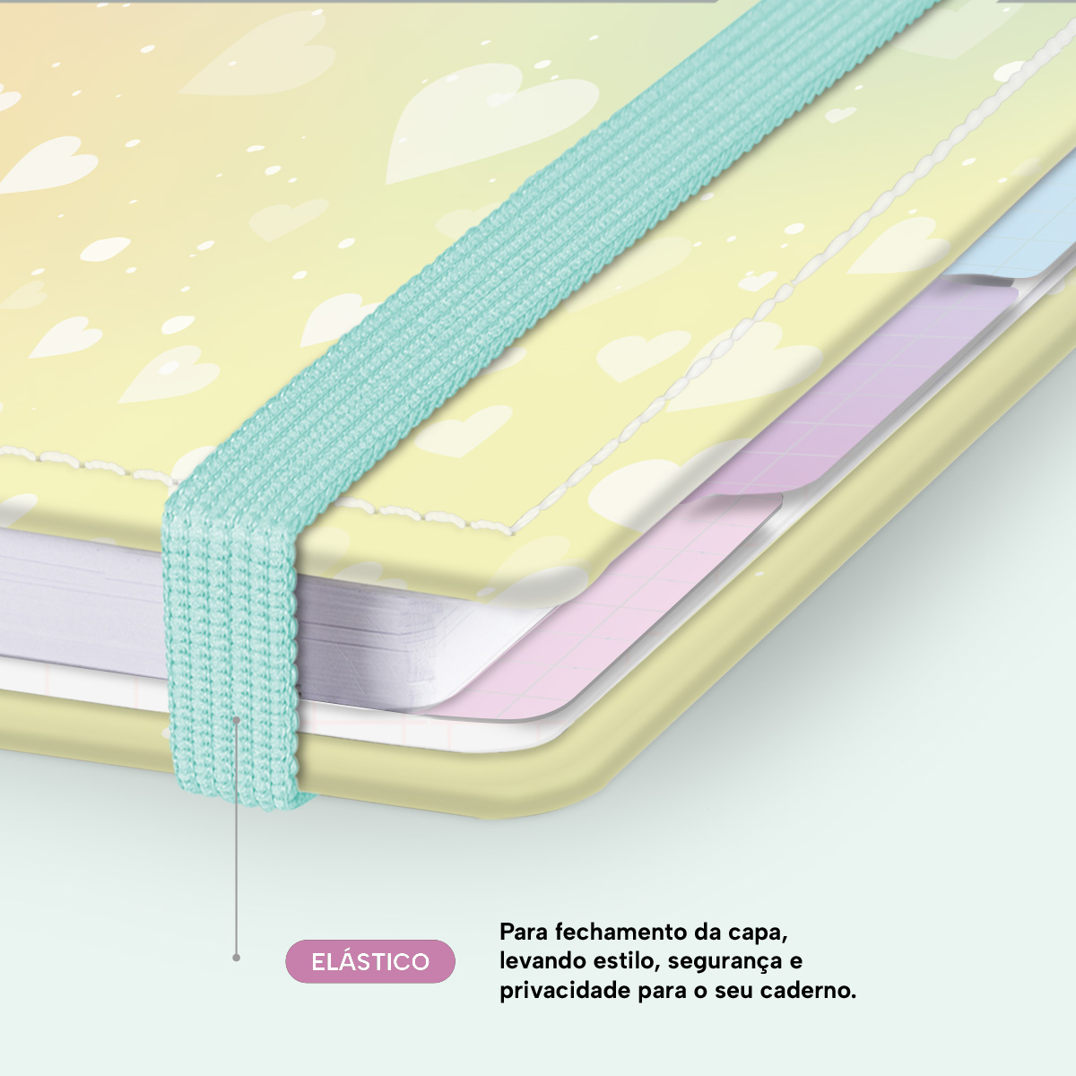 O miolo conta com 120 folhas pautadas decoradas em papel sulfite 90g, (aquele papel mais “grossinho”) para que você use e abuse das suas canetas especiais e 20 folhas em branco, ideais para explorar seu lado mais criativo ou até imprimir nelas.