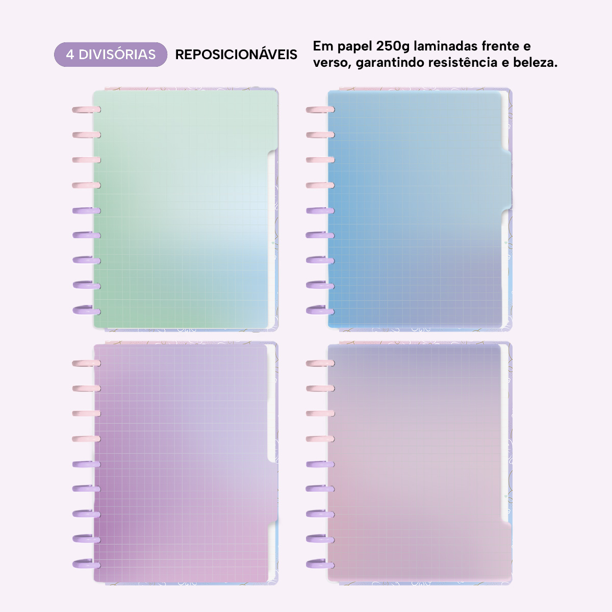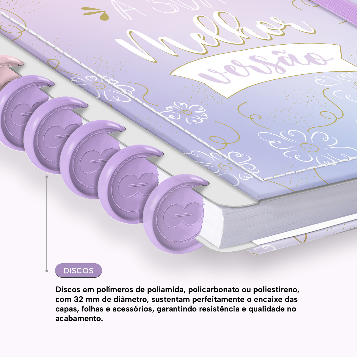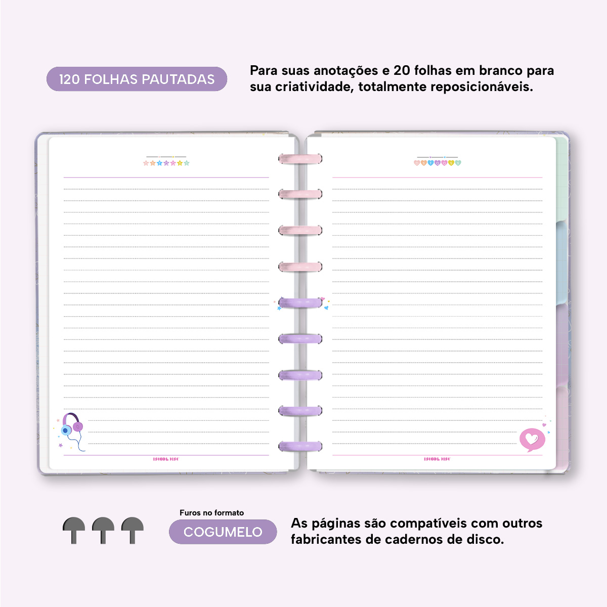 Tamanho da capa: 20,5 cm de largura por 28,5 cm de comprimento. Tamanho das folhas: 20 cm de largura por 27,5 cm de comprimento. Tamanho dos divisores: 21 cm de largura por 27,5 cm de comprimento.   Capa dura com impressão digital de alta definição. Elástico para fechamento da capa do caderno. Bolsa plástica para guardar documentos e anotações. Página com instruções de como utilizar seu caderno. Cartela de adesivos divertidos. Encadernado com 11 discos G de 32mm em polímero de nylon e/ou policarbonato coloridos, fabricados no Brasil. 6 divisores laminados (frente e verso) em papel 250g. Quantidade de folhas: 140 folhas, sendo 120 folhas pautadas decoradas e 20 folhas em branco. Quantidade de páginas: 280 páginas. Páginas internas em papel sulfite (offset) 90g branco.   ISCOOL DISC PRIME é a escolha perfeita para quem busca um modelo moderno, criativo, prático, versátil e original, com qualidade e ótimo custo-benefício. Um caderno totalmente customizável, no qual os elementos são reposicionáveis. Você pode montá-lo como preferir, deixando rolar solta toda sua criatividade. A capa é dura com impressão digital de alta definição, acompanha 6 lindas divisórias que você pode colocar em qualquer local do caderno, funcionando como o guia perfeito para sua organização. O miolo conta com 120 folhas pautadas decoradas em papel sulfite 90g, (aquele papel mais “grossinho”) para que você use e abuse das suas canetas especiais e 20 folhas em branco, ideais para explorar seu lado mais criativo ou até imprimir nelas. Com furos no formato de “cogumelo”, você poderá dar um “up” em seu caderno com nossos refis, além de ser compatível com outros fabricantes de cadernos de discos. Os nossos discos são fabricados em polímero de nylon e/ou policarbonato, podem ser substituídos, proporcionando imensa variedade na combinação das cores, qualidade no acabamento e eficácia no encaixe das capas, folhas e acessórios. Além de tudo isso, o ISCOOL DISC PRIME UNIVERSITÁRIO, conta com detalhezinhos que fazem toda diferença: elástico para fechamento da capa, muito mais estilo e privacidade para suas anotações; bolsa plástica para guardar seus rascunhos, referências, lembretes, documentos e uma cartela de adesivos incríveis, para que você possa personalizar seu caderno do seu jeitinho!   Afinal, com o ISCOOL DISC PRIME, o legal é ser criativo, porque inteligente é você!   Produzimos cadernos, agendas e produtos de papelaria há mais de 28 anos! Garantimos a qualidade e a excelência do seu produto.