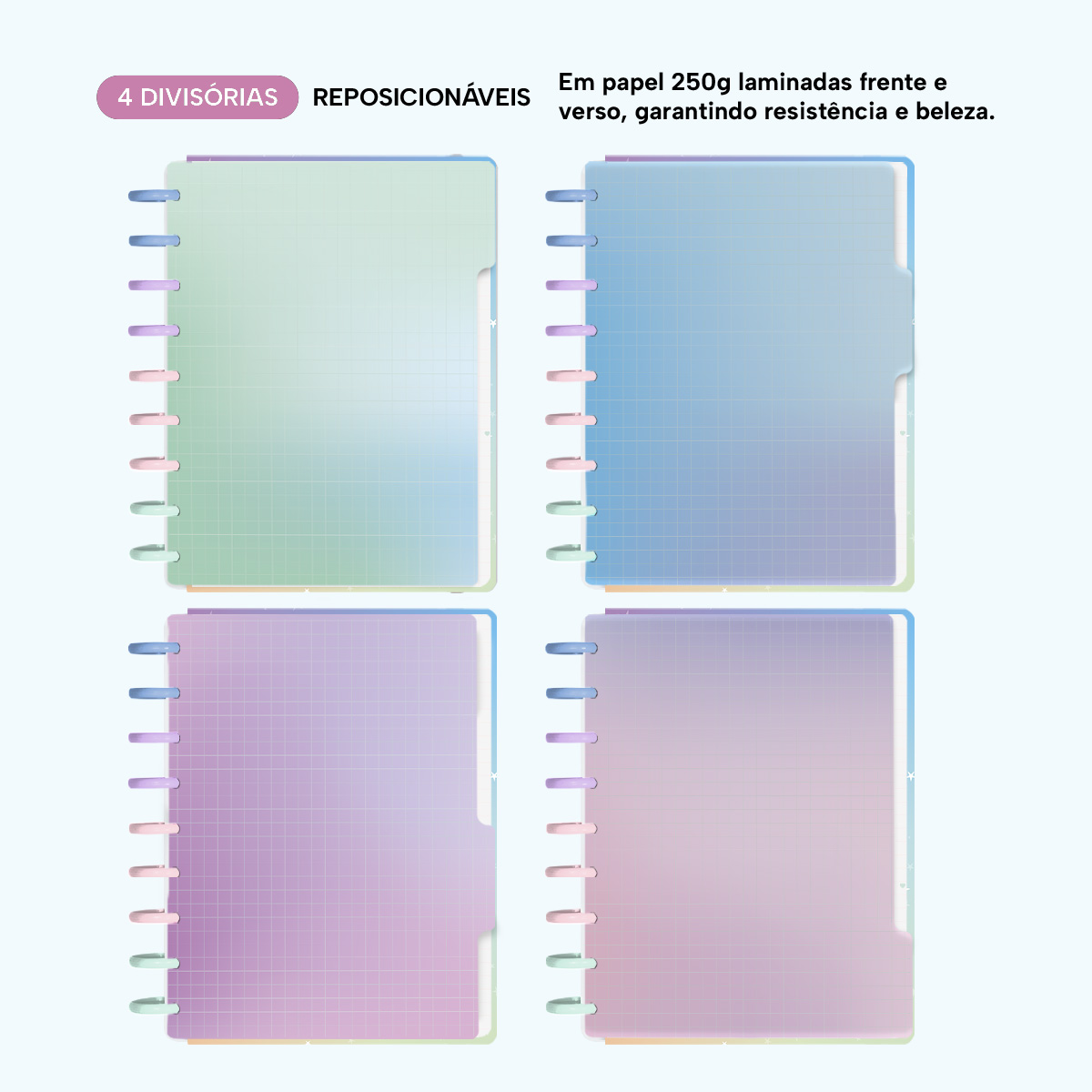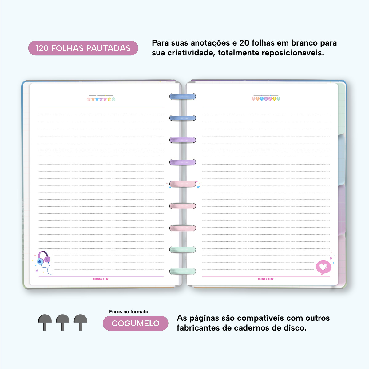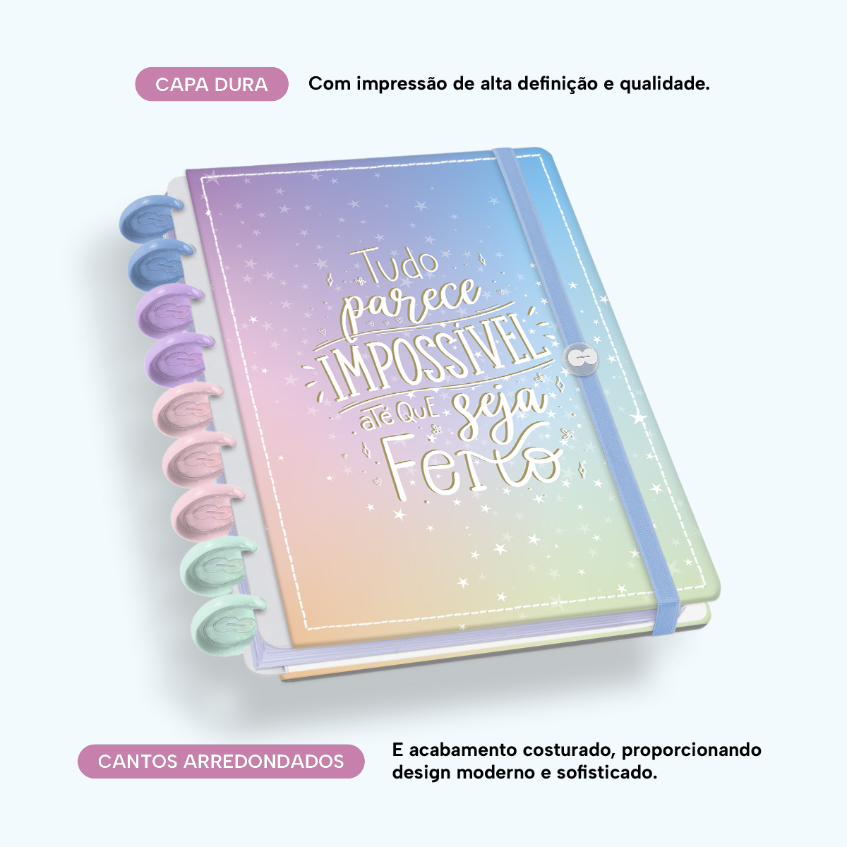A capa é dura com impressão digital de alta definição, acompanha 6 lindas divisórias que você pode colocar em qualquer local do caderno, funcionando como o guia perfeito para sua organização.