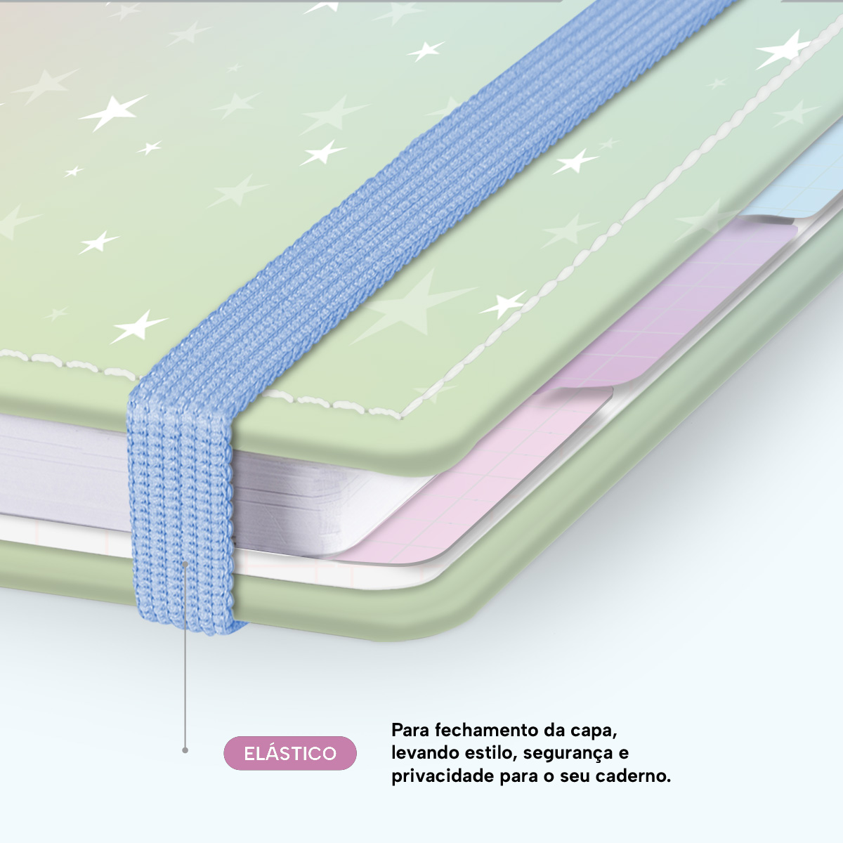 O miolo conta com 120 folhas pautadas decoradas em papel sulfite 90g, (aquele papel mais “grossinho”) para que você use e abuse das suas canetas especiais e 20 folhas em branco, ideais para explorar seu lado mais criativo ou até imprimir nelas.
