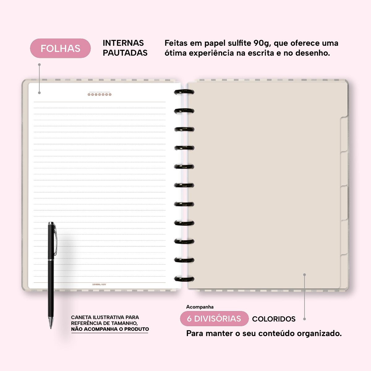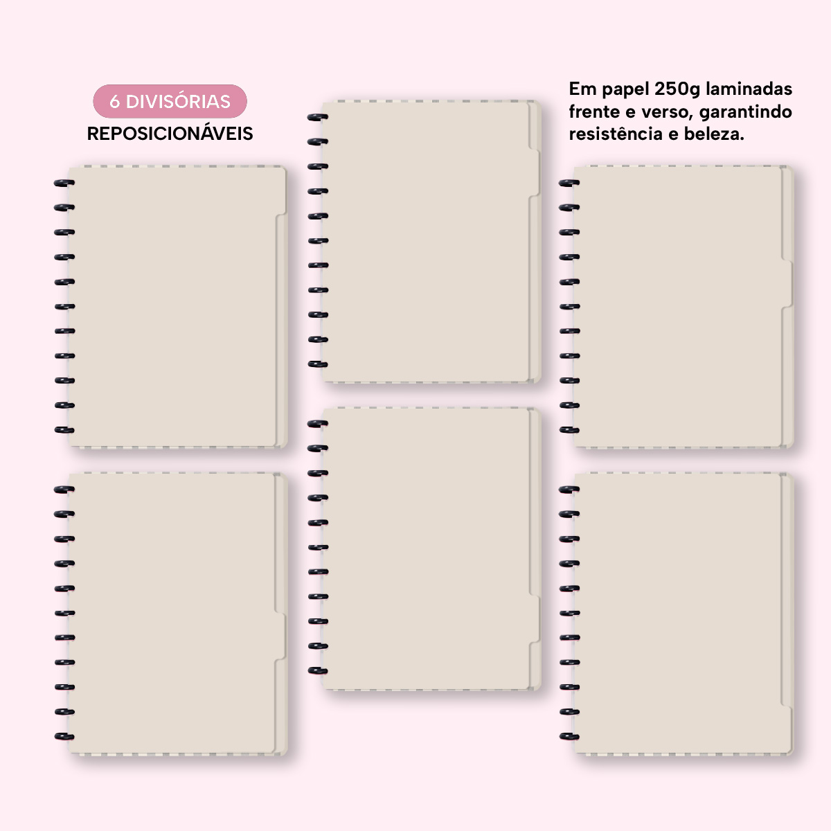 A capa é dura com impressão digital de alta definição, acompanha 6 lindas divisórias que você pode colocar em qualquer local do caderno, funcionando como o guia perfeito para sua organização.