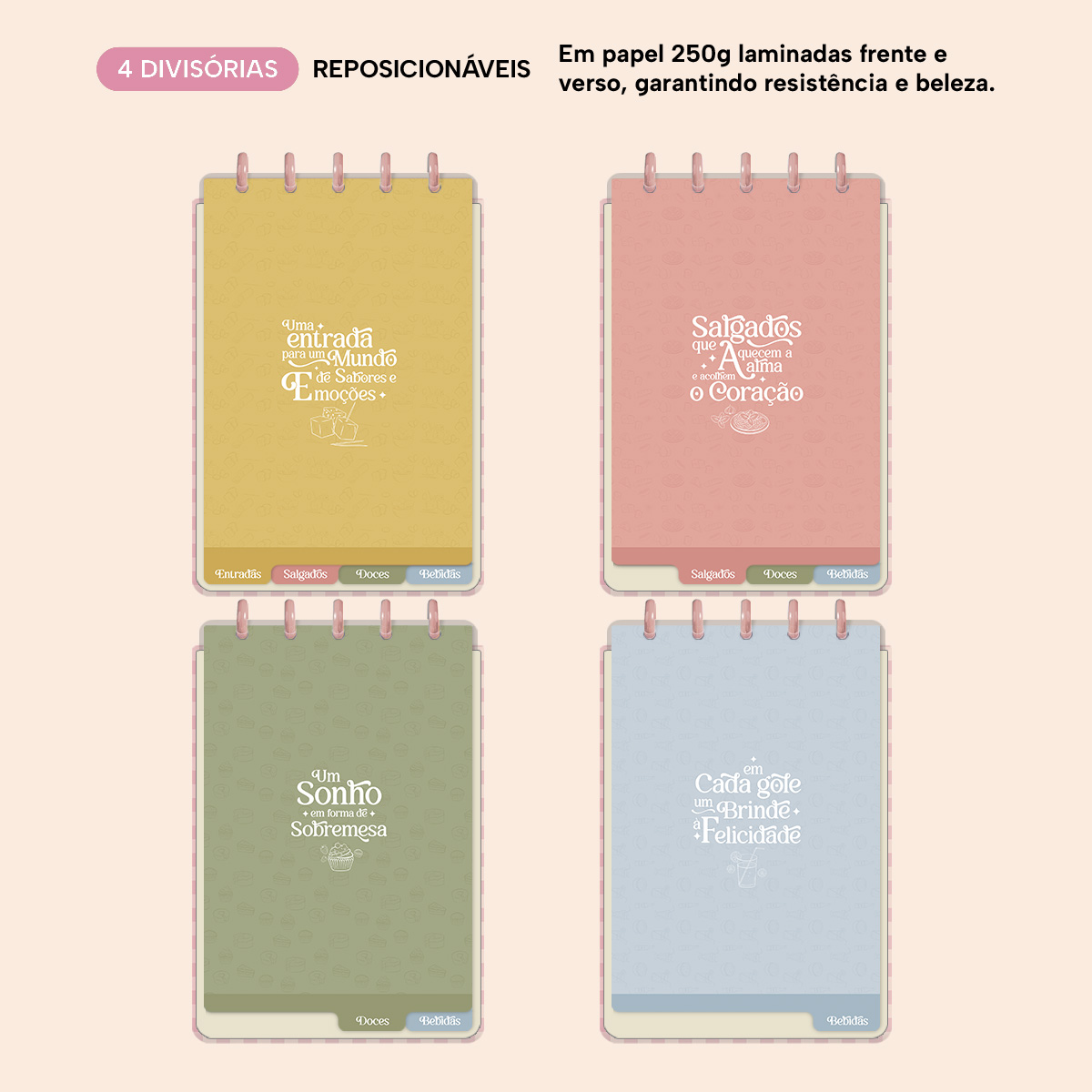 Além disso tudo, você ainda poderá contar com uma cartela de adesivos incríveis e mais 4 lindas divisórias que você pode colocar em qualquer local do caderno, funcionando como o guia perfeito para sua organização.