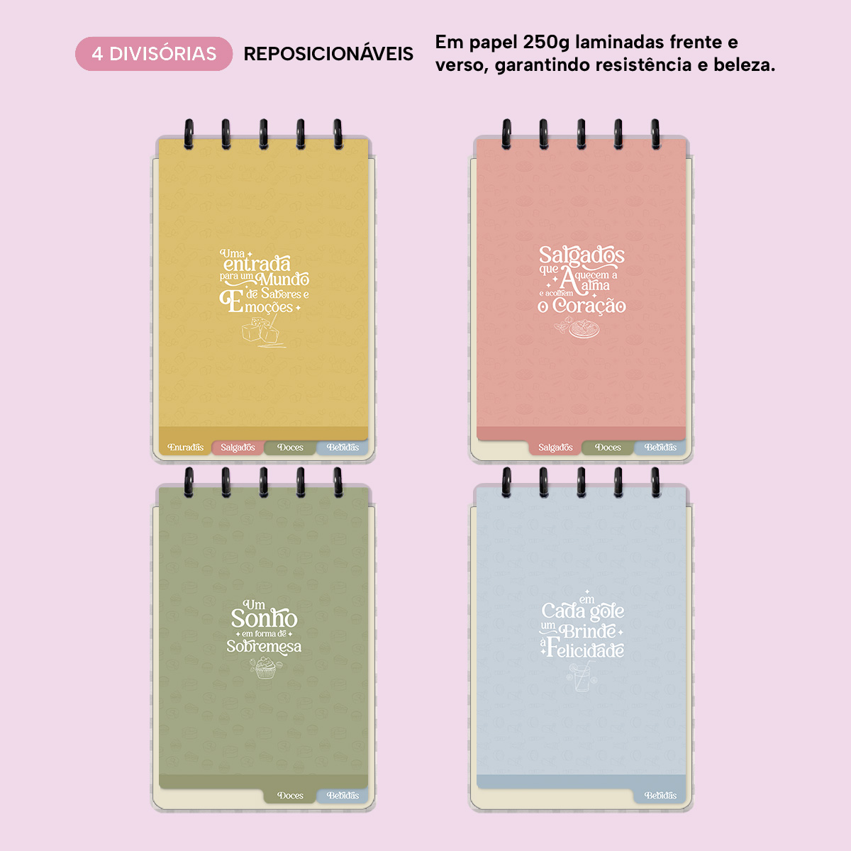 Além disso tudo, você ainda poderá contar com uma cartela de adesivos incríveis e mais 4 lindas divisórias que você pode colocar em qualquer local do caderno, funcionando como o guia perfeito para sua organização.