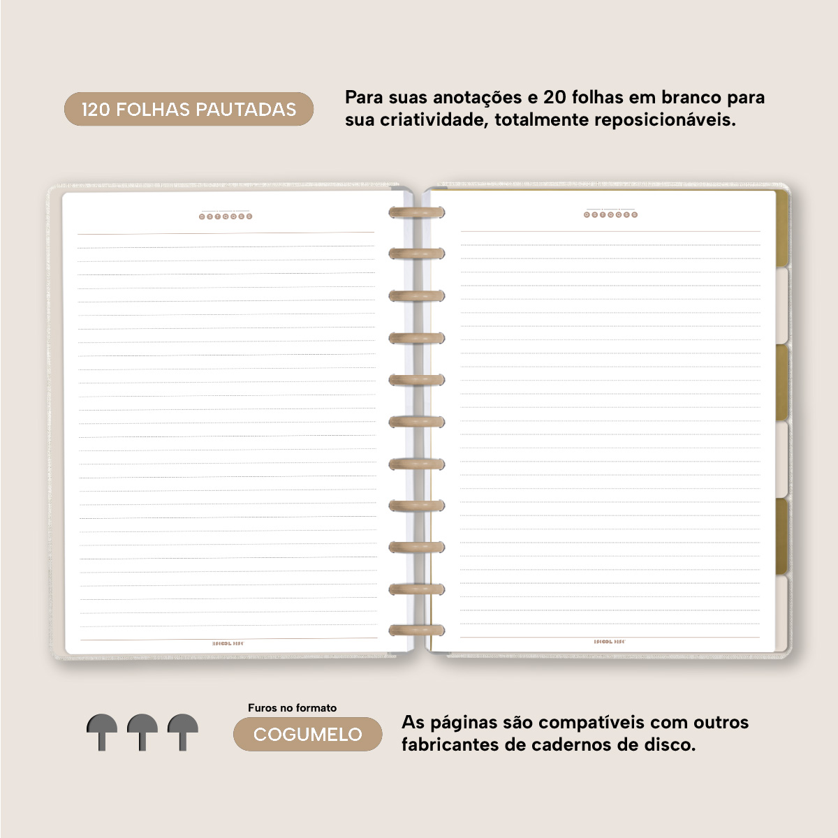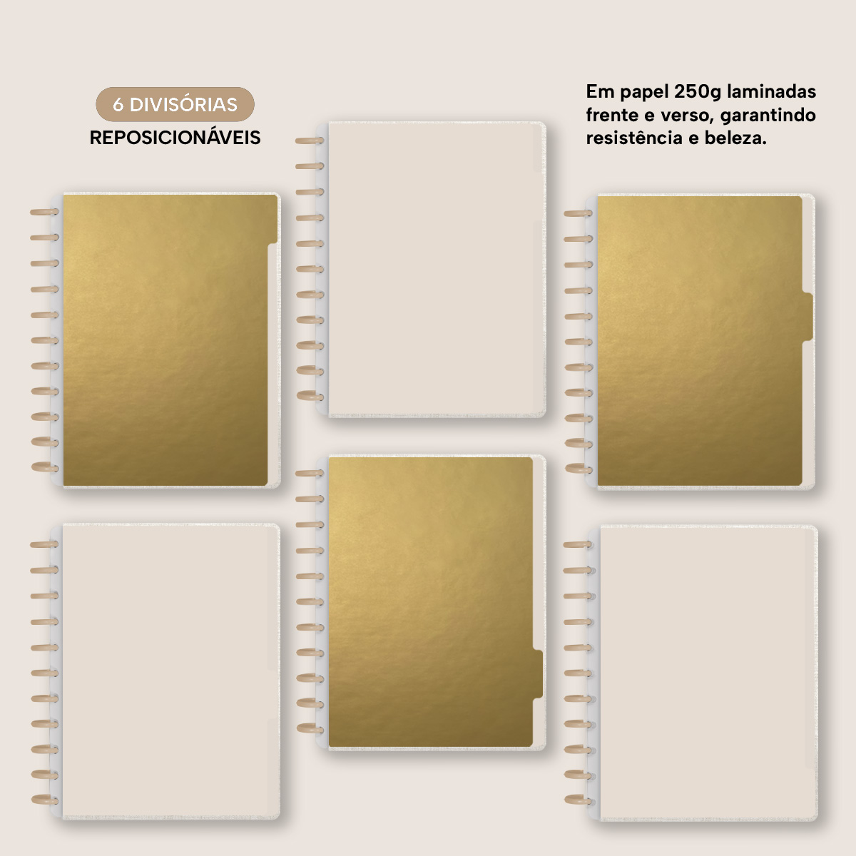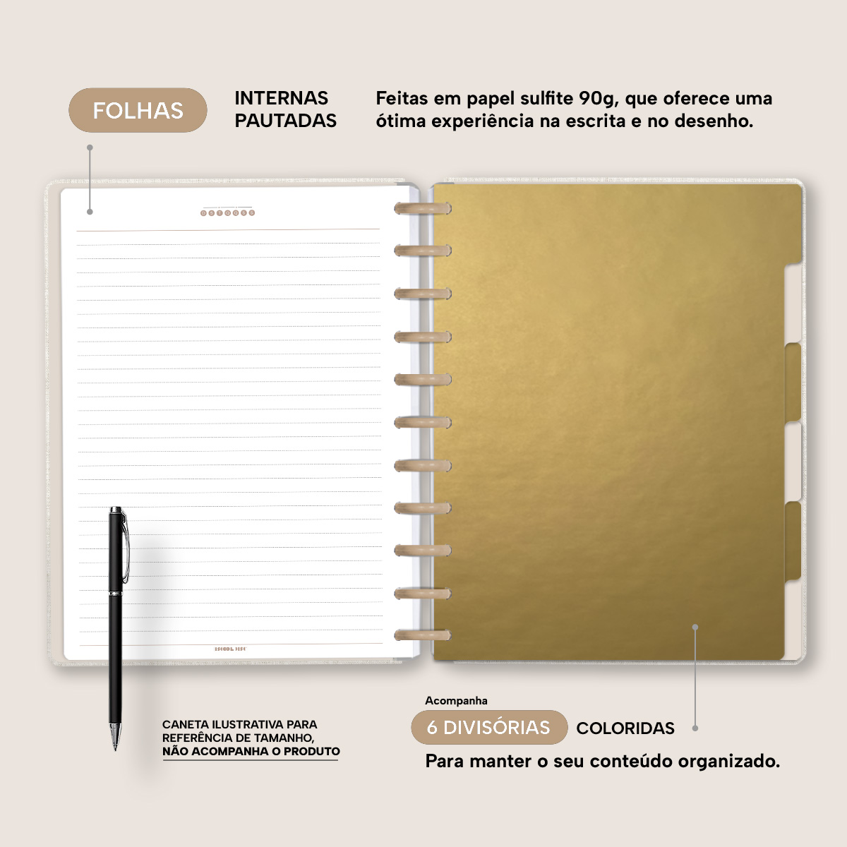 A capa é dura com impressão digital de alta definição, acompanha 6 lindas divisórias que você pode colocar em qualquer local do caderno, funcionando como o guia perfeito para sua organização.