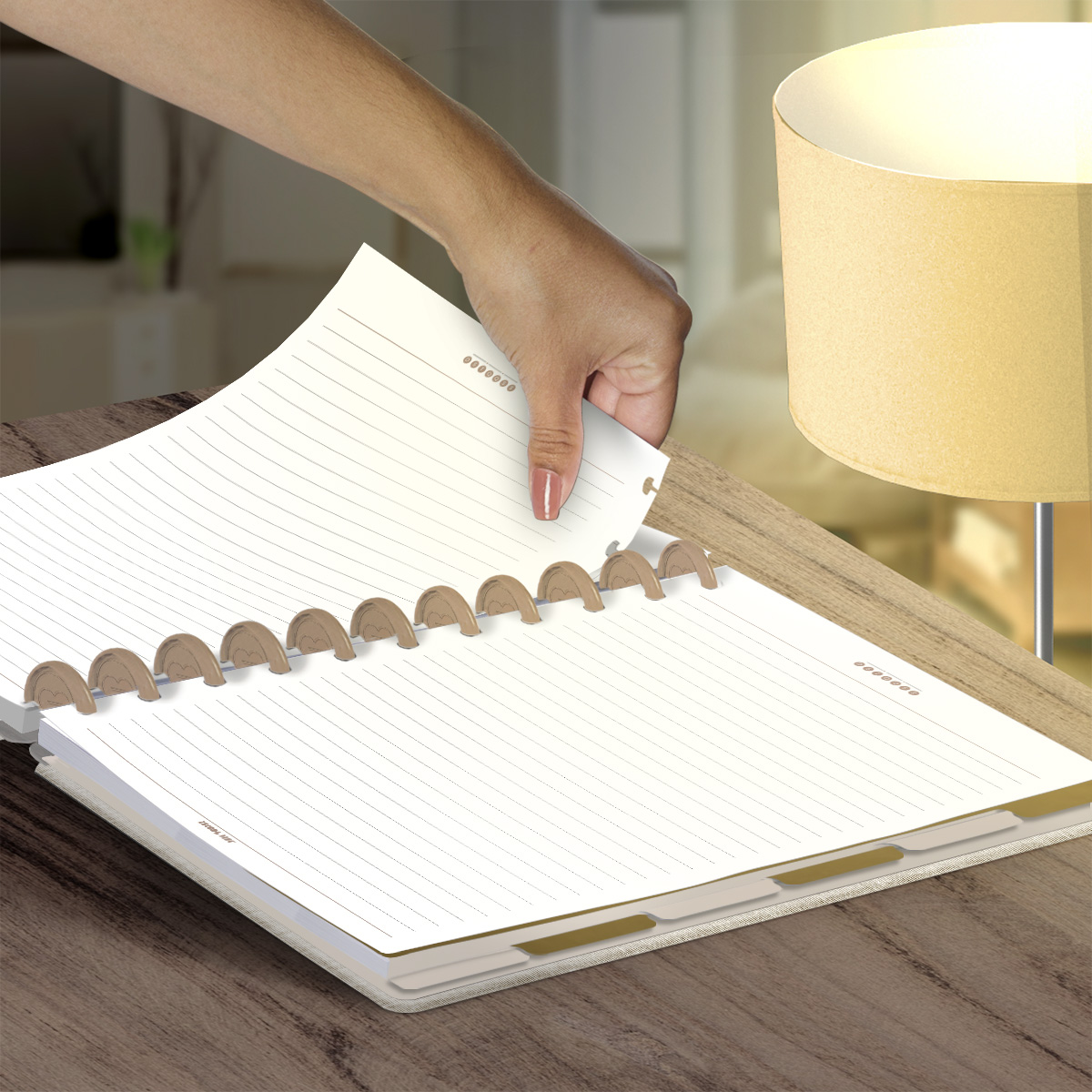 Um caderno totalmente customizável, no qual os elementos são reposicionáveis. Você pode montá-lo como preferir, deixando rolar solta toda sua criatividade.