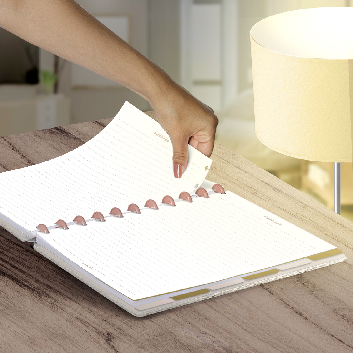 Um caderno totalmente customizável, no qual os elementos são reposicionáveis. Você pode montá-lo como preferir, deixando rolar solta toda sua criatividade.