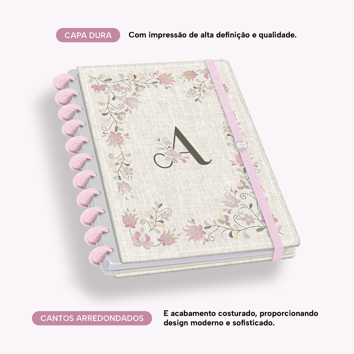 Um caderno totalmente customizável, no qual os elementos são reposicionáveis. Você pode montá-lo como preferir, deixando rolar solta toda sua criatividade.