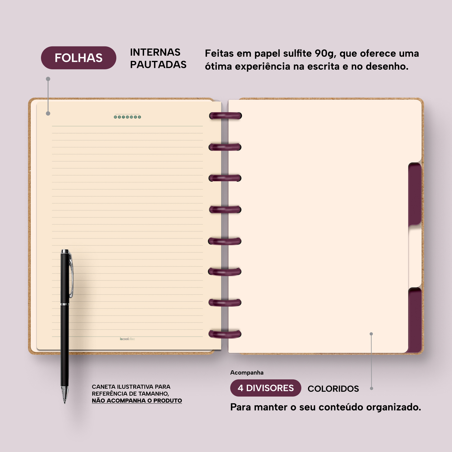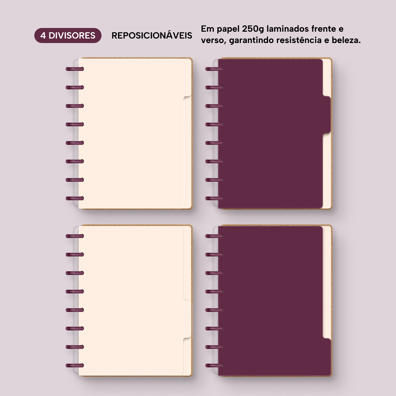 A capa é dura, com impressão digital de alta definição, e acompanha 6 lindas divisórias que você pode colocar em qualquer local do caderno, funcionando como o guia perfeito para sua organização.