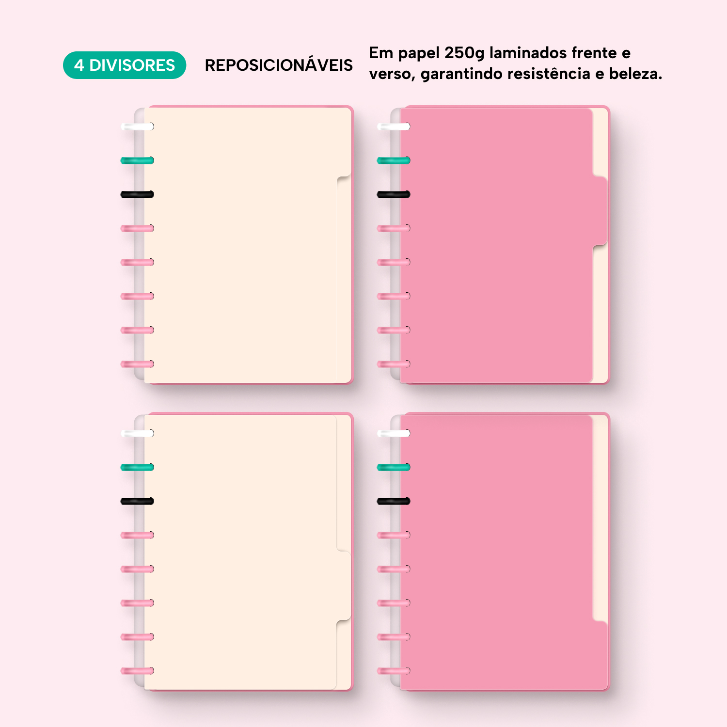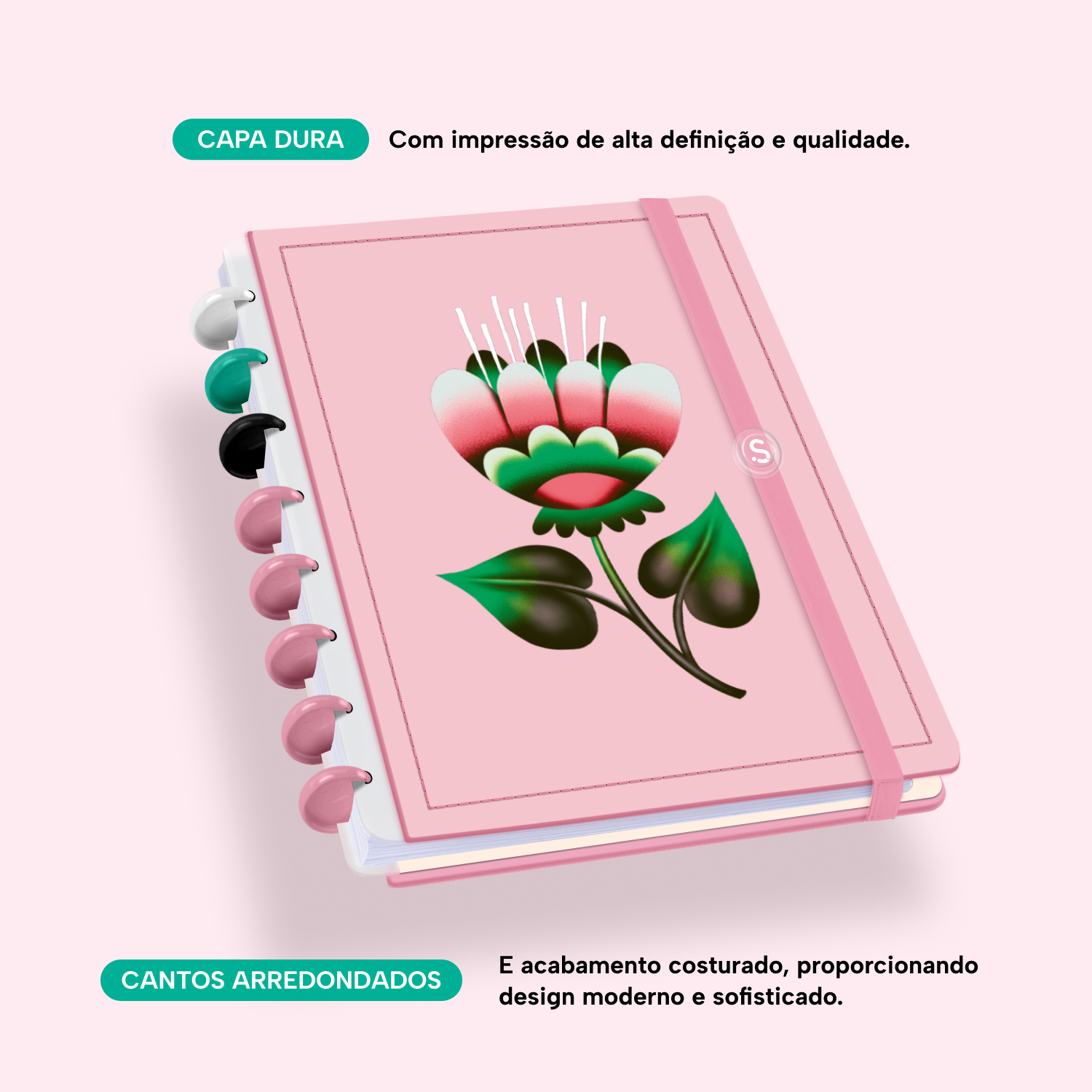 A capa é dura, com impressão digital de alta definição, e acompanha 6 lindas divisórias que você pode colocar em qualquer local do caderno, funcionando como o guia perfeito para sua organização.