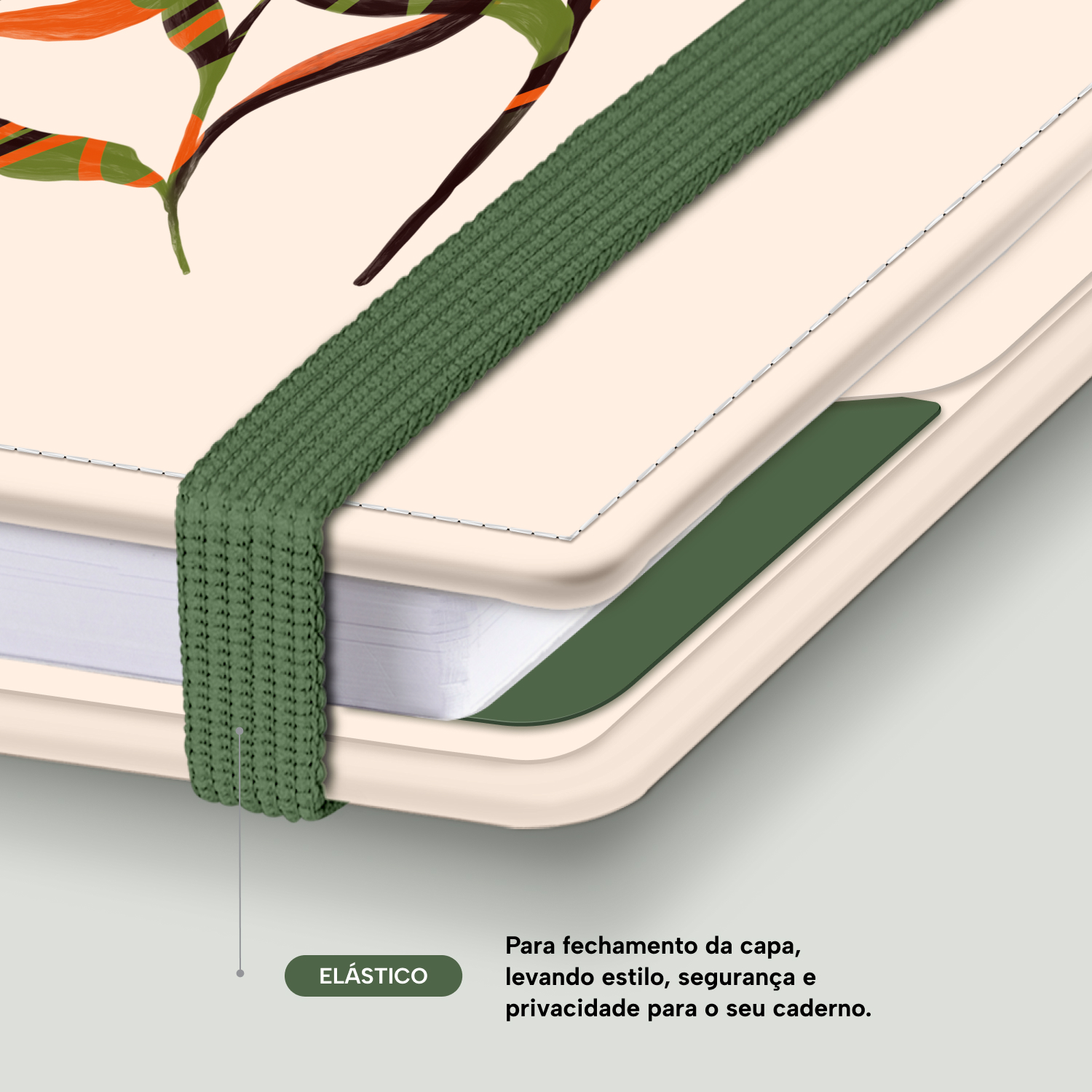 Elástico para fechamento da capa do caderno.