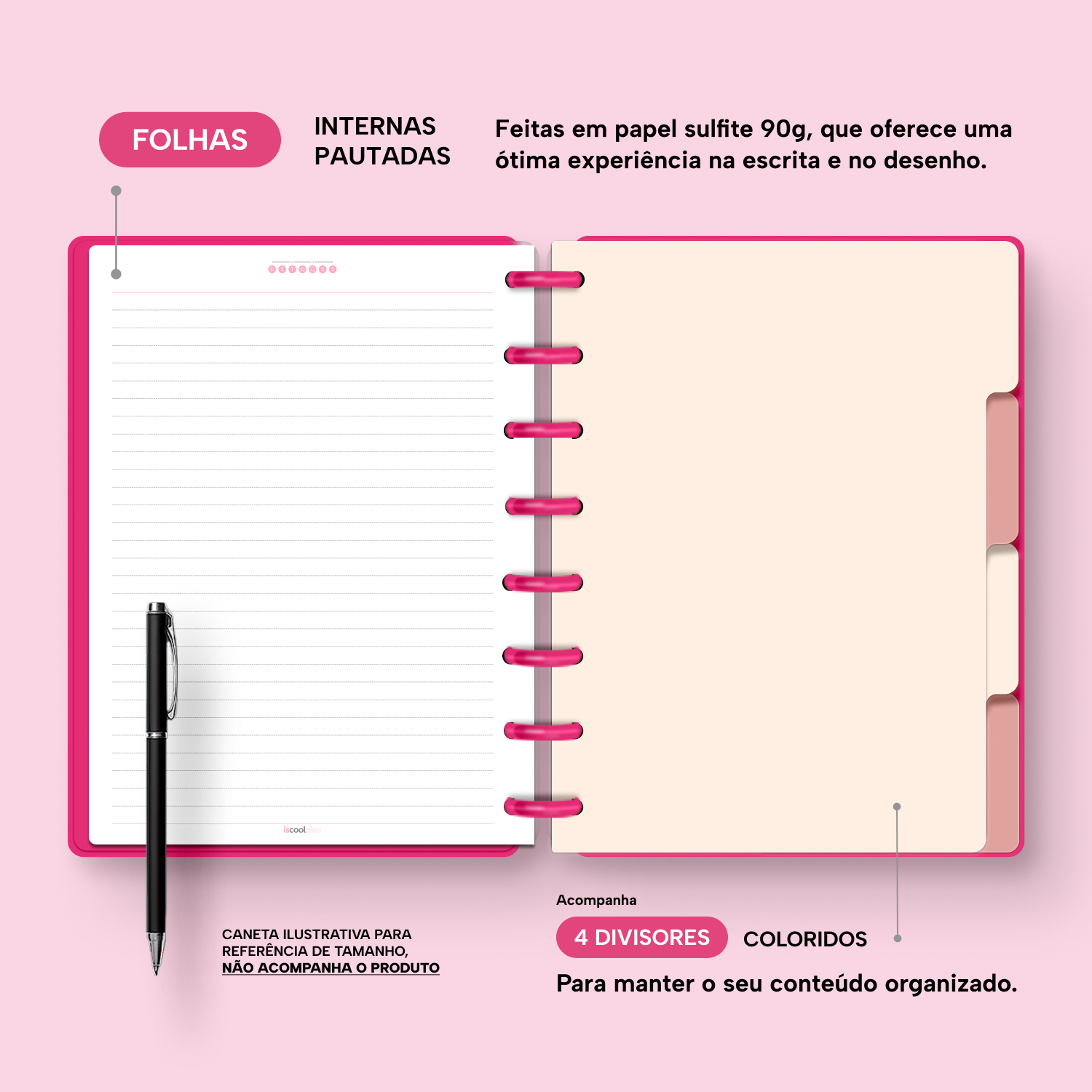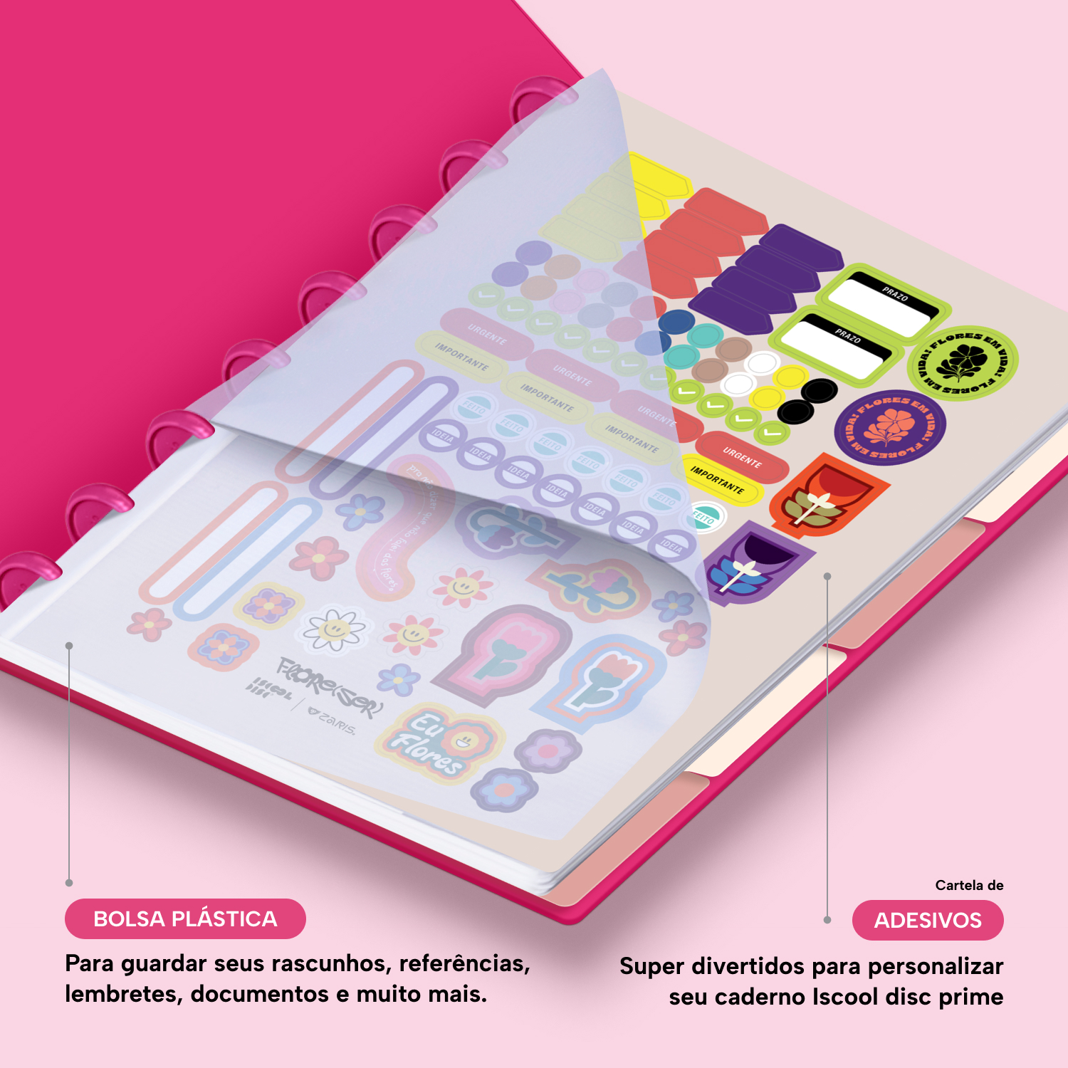 Tamanho da capa: 20,5 cm de largura por 28,5 cm de comprimento. Tamanho das folhas: 20 cm de largura por 27,5 cm de comprimento. Tamanho dos divisores: 21 cm de largura por 27,5 cm de comprimento.   Capa dura com impressão digital de alta definição. Elástico para fechamento da capa do caderno. Bolsa plástica para guardar documentos e anotações. Página com instruções de como utilizar seu caderno. Cartela de adesivos divertidos. Encadernado com 11 discos M de 23mm em polímero de nylon e/ou policarbonato coloridos, fabricados no Brasil. 6 divisores laminados (frente e verso) em papel 250g. Quantidade de folhas: 80 folhas, sendo 60 folhas pautadas decoradas e 20 folhas em branco. Quantidade de páginas: 160 páginas. Páginas internas em papel sulfite (offset) 90g branco.   Criada para celebrar a essência das culturas orientais, africanas e as diversidades regionais do Brasil, a Coleção Raízes nasce do desejo profundo de homenagear, conectar e celebrar a riqueza das mais influentes tradições do Brasil e do mundo.   Cada ilustração e cada detalhe foram pensados para representar a força, a resistência e a beleza que essas raízes carregam. Uma homenagem não apenas à história dessas culturas, mas também à sua contínua influência no presente, à sua capacidade de se reinventar e, acima de tudo, ao orgulho de pertencer.   Coleção exclusiva! Collab: iscool e Zaris.   iscooldisc Prime é a escolha perfeita para quem busca um modelo moderno, criativo, prático, versátil e original, com qualidade e ótimo custo-benefício. Um caderno totalmente customizável, no qual os elementos são reposicionáveis. Você pode montá-lo como preferir, deixando rolar solta toda a sua criatividade. A capa é dura, com impressão digital de alta definição, e acompanha 6 lindas divisórias que você pode colocar em qualquer local do caderno, funcionando como o guia perfeito para sua organização. O miolo conta com 60 folhas pautadas decoradas em papel sulfite 90g (aquele papel mais “grossinho”) para que você use e abuse das suas canetas especiais, e 20 folhas em branco, ideais para explorar seu lado mais criativo ou até imprimir nelas. Com furos no formato de “cogumelo”, você poderá dar um “up” em seu caderno com nossos refis, além de ser compatível com outros fabricantes de cadernos de discos. Os nossos discos são fabricados em polímero de nylon e/ou policarbonato. Podem ser substituídos, proporcionando imensa variedade na combinação das cores, qualidade no acabamento e eficácia no encaixe das capas, folhas e acessórios. Além de tudo isso, o iscooldisc Prime conta com detalhes que fazem toda a diferença: elástico para fechamento da capa, muito mais estilo e privacidade para suas anotações; bolsa plástica para guardar seus rascunhos, referências, lembretes, documentos e uma cartela de adesivos incríveis, para que você possa personalizar seu caderno do seu jeitinho!   Afinal, com o iscooldisc Prime, o legal é ser criativo, porque inteligente é você!   Produzimos cadernos, agendas e produtos de papelaria há mais de 30 anos! Garantimos a qualidade e a excelência do seu produto.