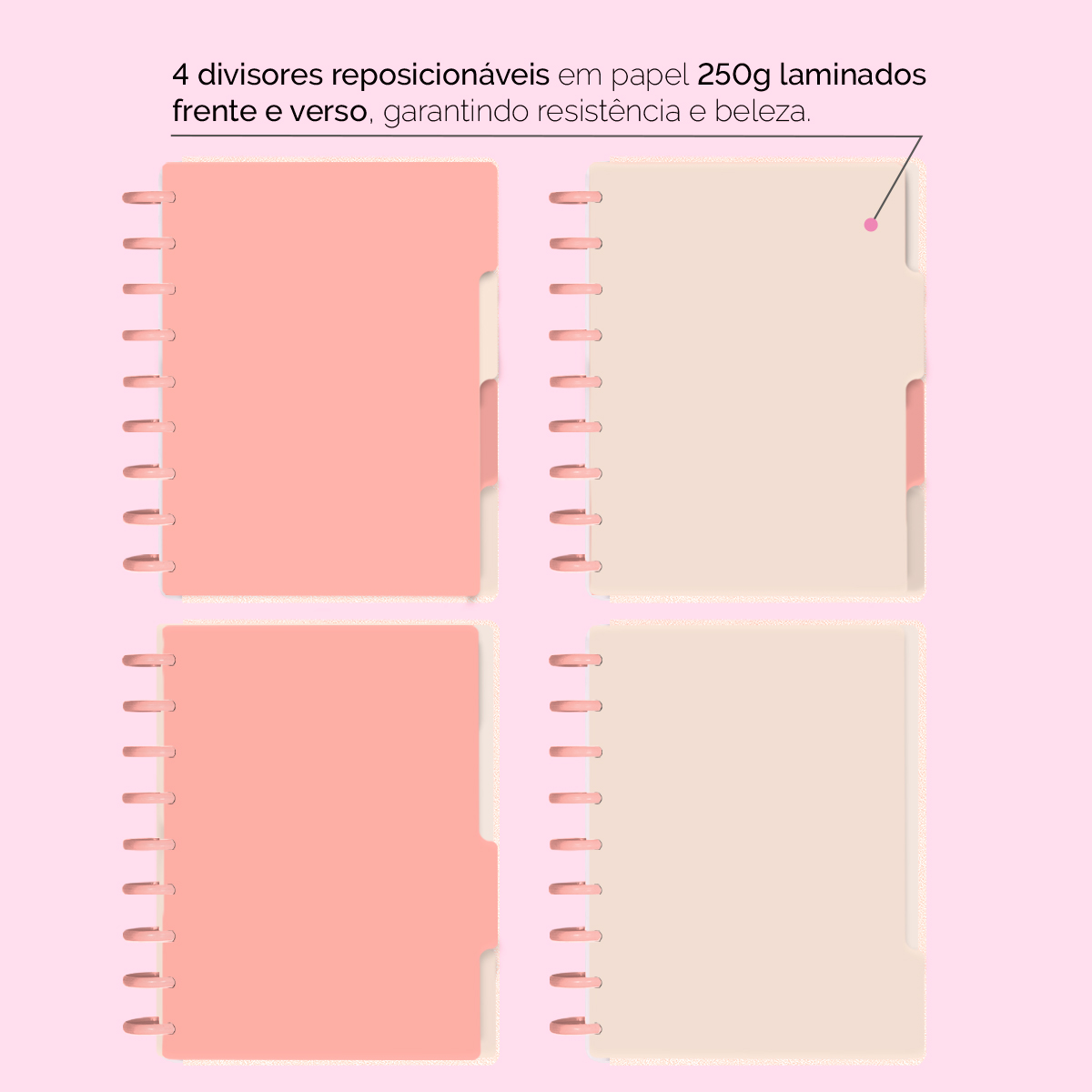4 divisores laminados (frente e verso) em papel 250g.