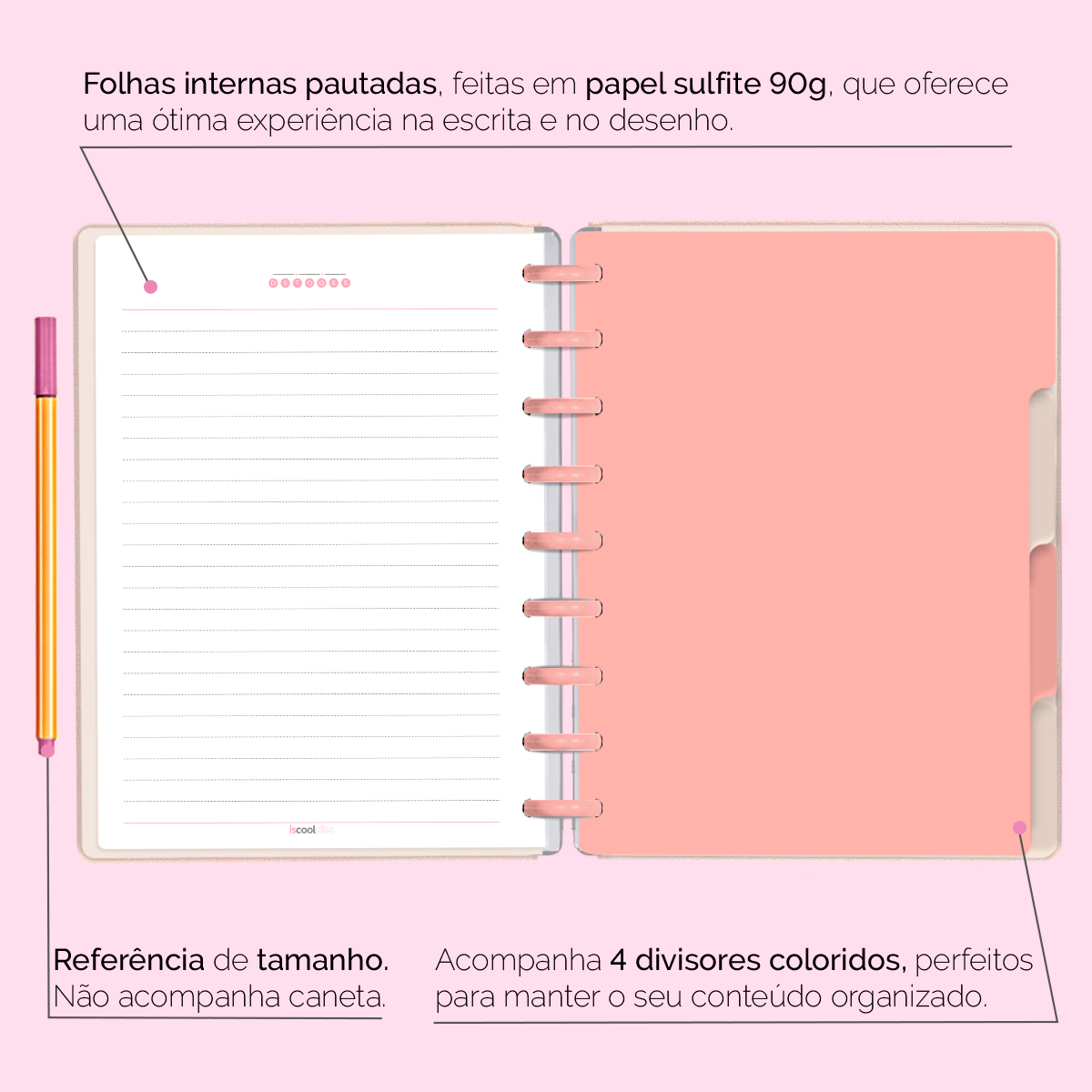 A capa é dura com impressão digital de alta definição, acompanha 6 lindas divisórias que você pode colocar em qualquer local do caderno, funcionando como o guia perfeito para sua organização.