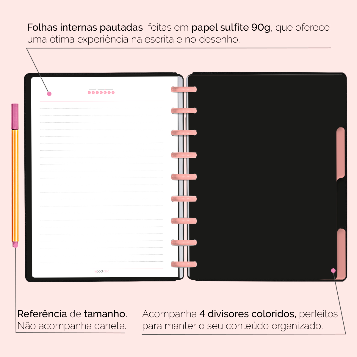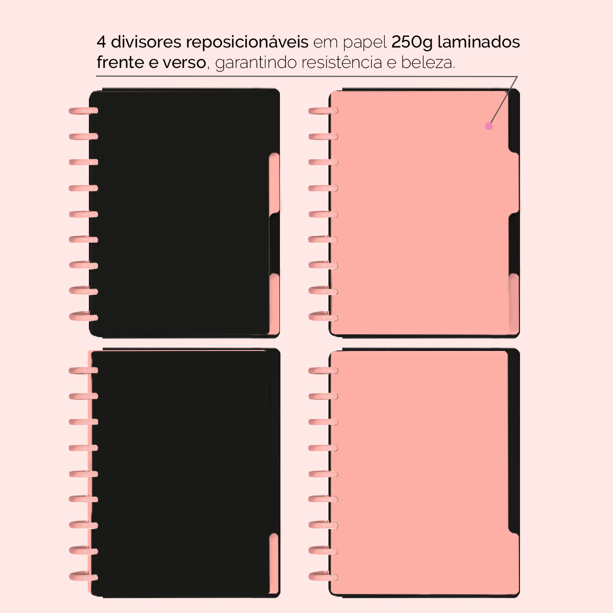 A capa é dura com impressão digital de alta definição, acompanha 6 lindas divisórias que você pode colocar em qualquer local do caderno, funcionando como o guia perfeito para sua organização.