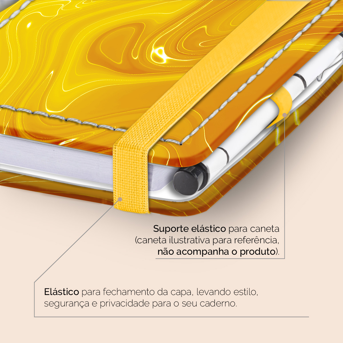 Elástico para fechamento da capa do caderno.