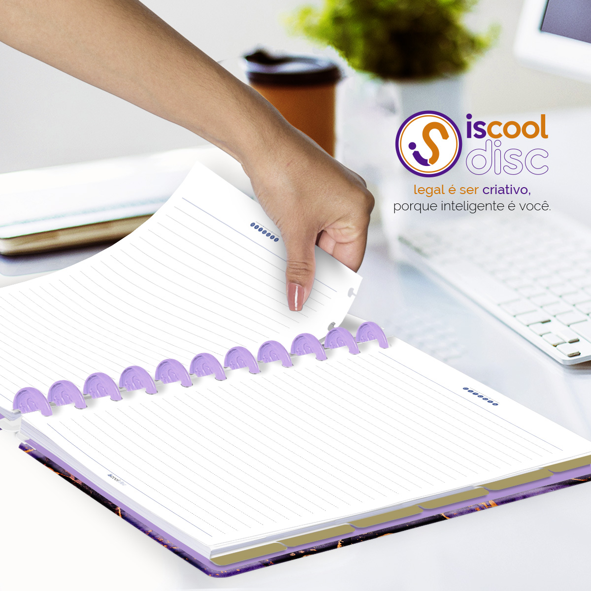 Com furos no formato de “cogumelo”, você poderá dar um “up” em seu caderno com nossos refis, além de ser compatível com outros fabricantes de cadernos de discos.