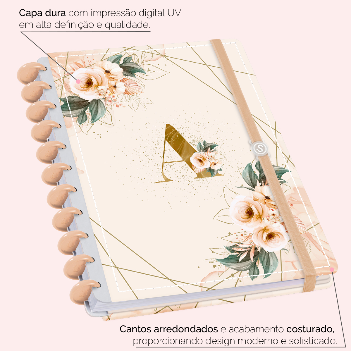 Um caderno totalmente customizável, no qual os elementos são reposicionáveis. Você pode montá-lo como preferir, deixando rolar solta toda sua criatividade.