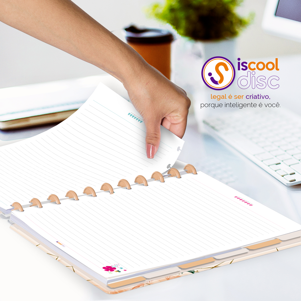 Com furos no formato de “cogumelo”, você poderá dar um “up” em seu caderno com nossos refis, além de ser compatível com outros fabricantes de cadernos de discos.