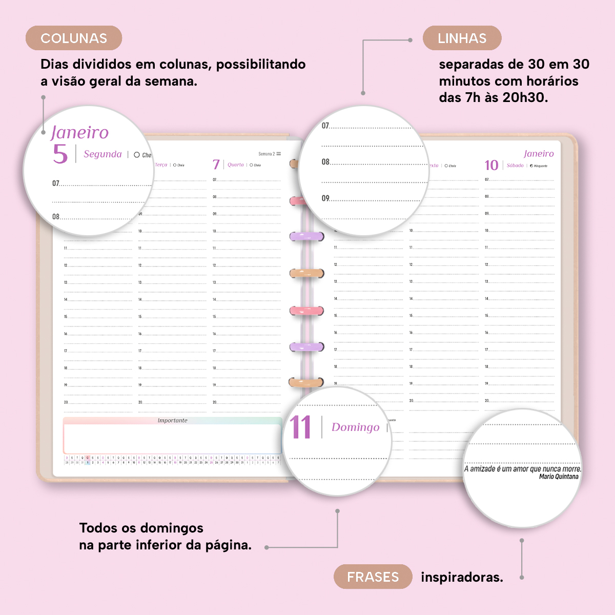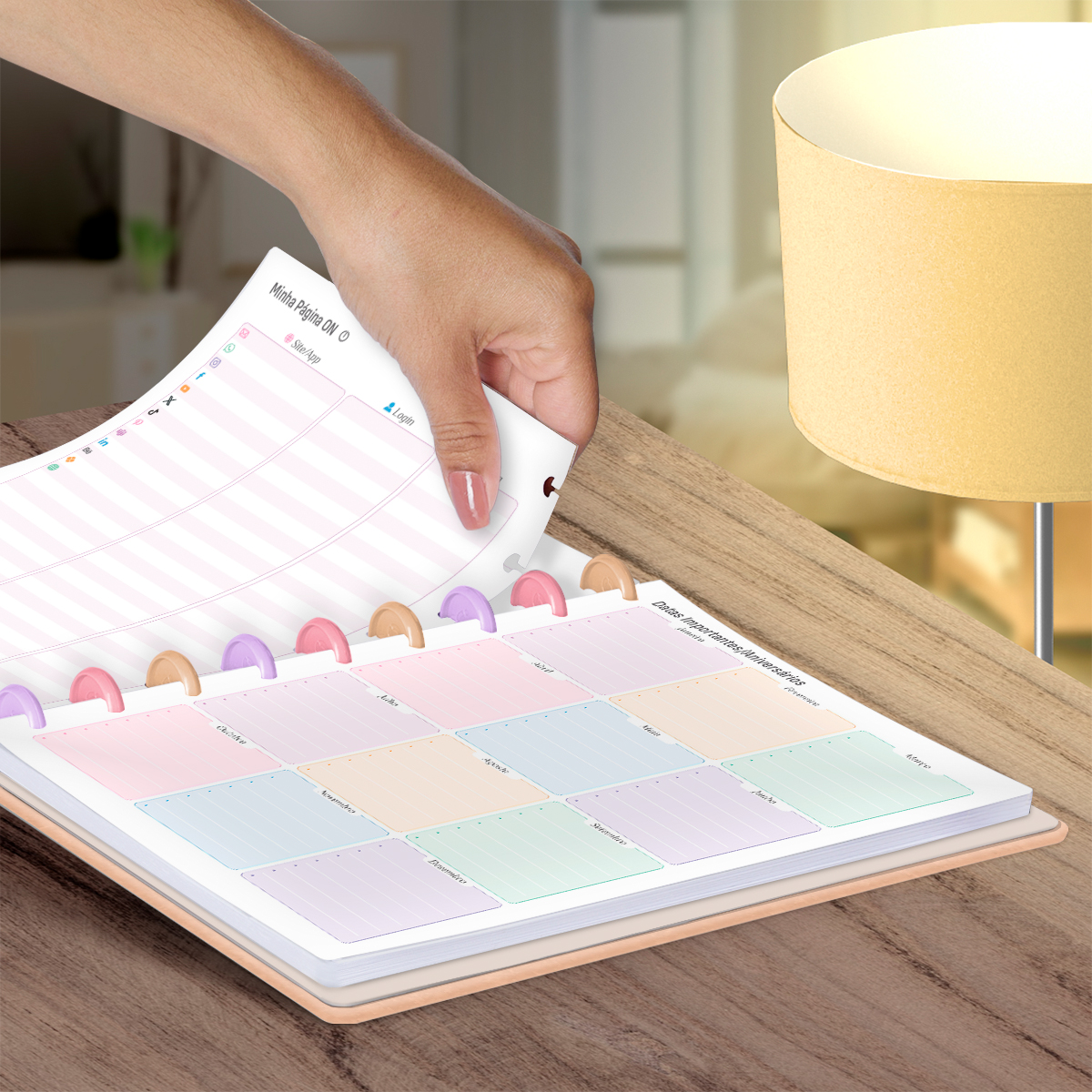 O Iscool Disc Planner Datado 2026 foi criado especialmente para ajudar você a alcançar todas as suas metas e objetivos pessoais. É um planner totalmente customizável, no qual os elementos são reposicionáveis. Você pode montá-lo como preferir, deixando sua criatividade fluir livremente.