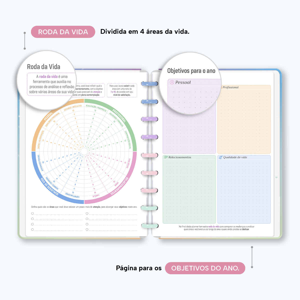 O Iscool Disc Planner Datado 2026 foi criado especialmente para ajudar você a alcançar todas as suas metas e objetivos pessoais. É um planner totalmente customizável, no qual os elementos são reposicionáveis. Você pode montá-lo como preferir, deixando sua criatividade fluir livremente.