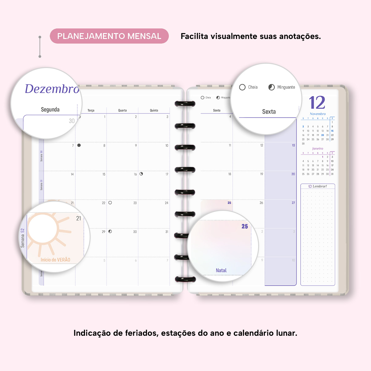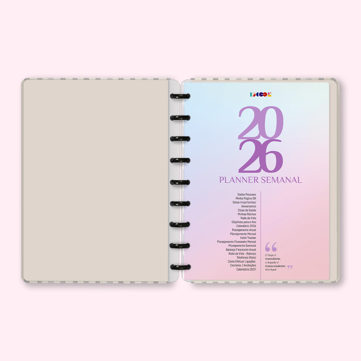 O Iscool Disc Planner Datado 2026 foi criado especialmente para ajudar você a alcançar todas as suas metas e objetivos pessoais. É um planner totalmente customizável, no qual os elementos são reposicionáveis. Você pode montá-lo como preferir, deixando sua criatividade fluir livremente.