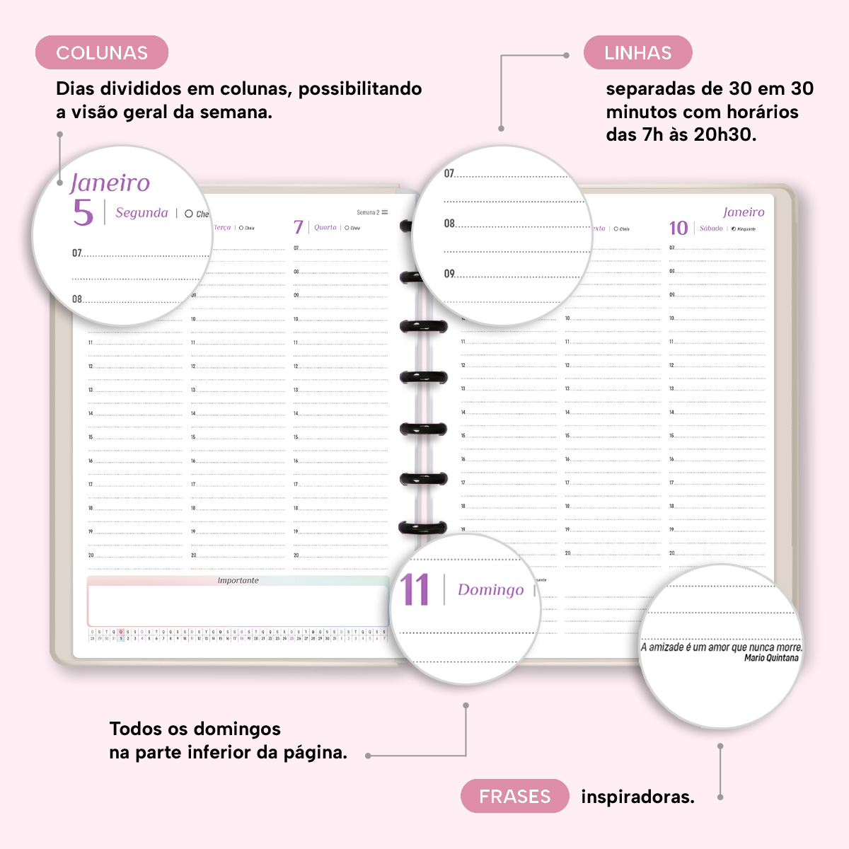 O Iscool Disc Planner Datado 2026 foi criado especialmente para ajudar você a alcançar todas as suas metas e objetivos pessoais. É um planner totalmente customizável, no qual os elementos são reposicionáveis. Você pode montá-lo como preferir, deixando sua criatividade fluir livremente.