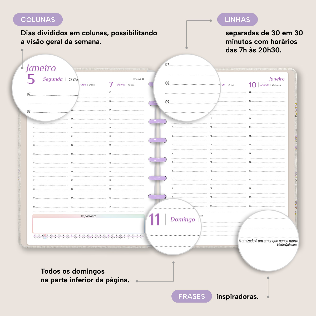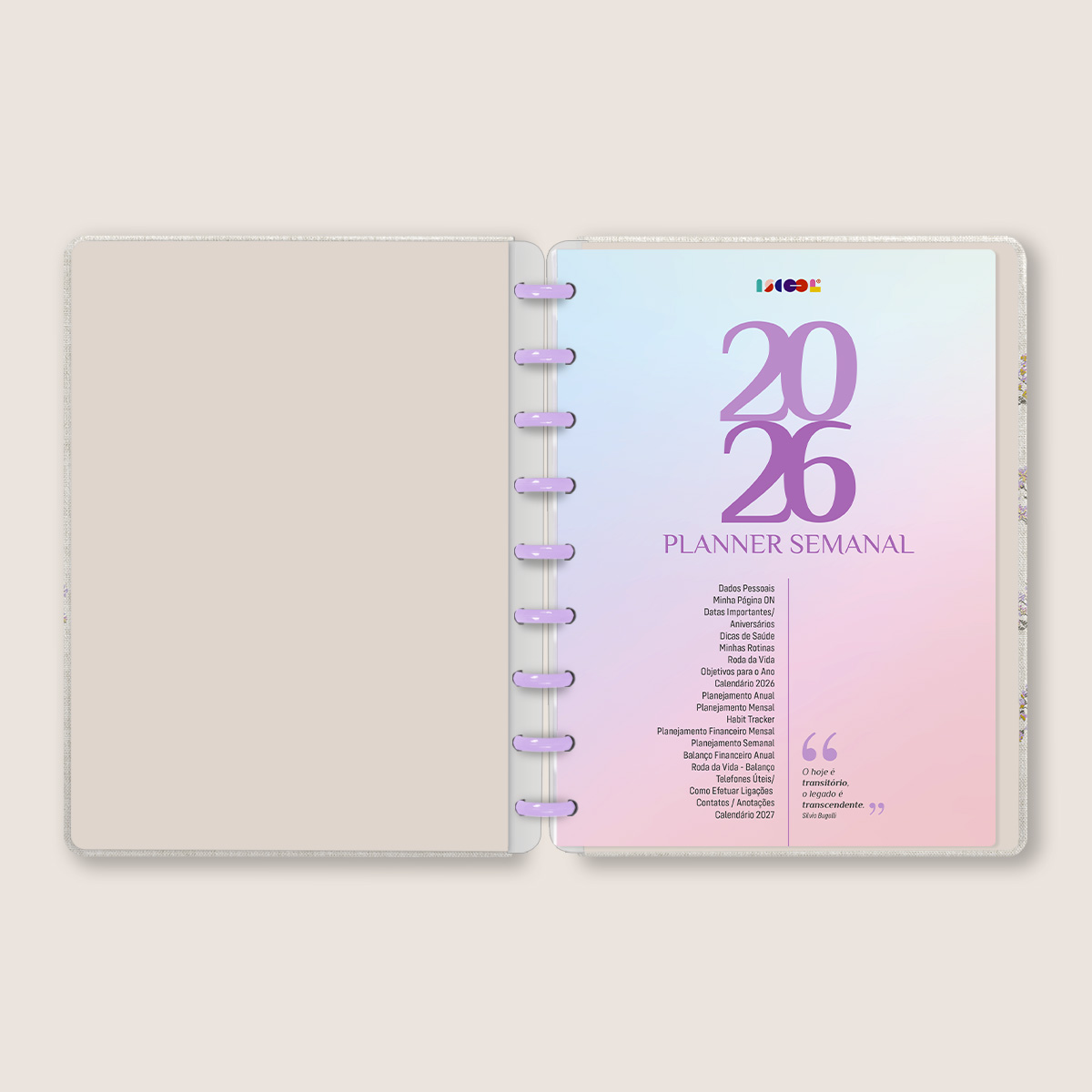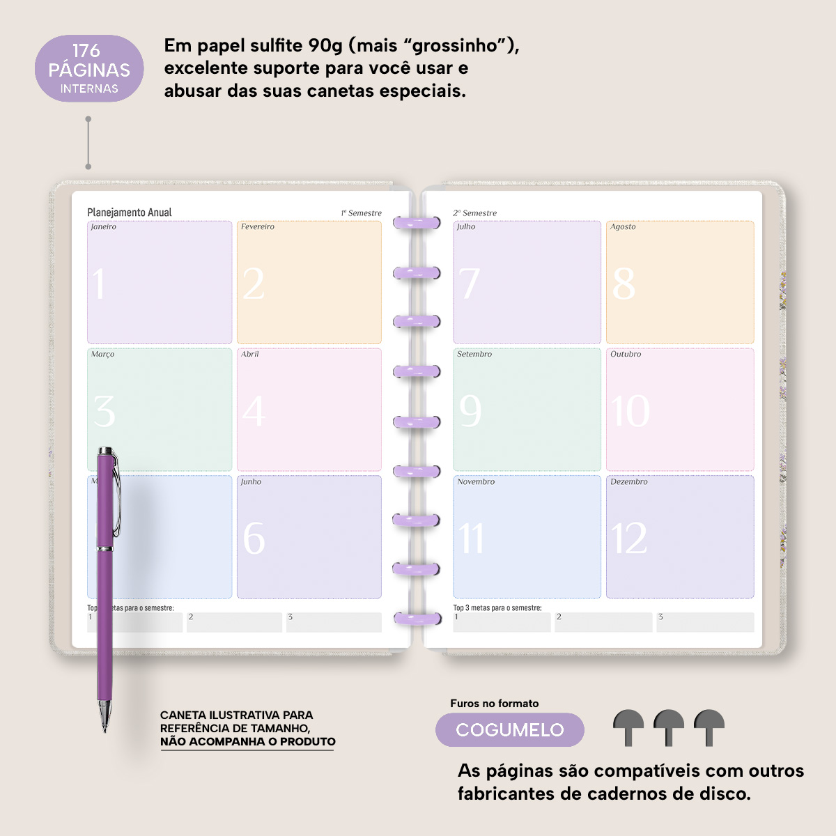 O Iscool Disc Planner Datado 2026 foi criado especialmente para ajudar você a alcançar todas as suas metas e objetivos pessoais. É um planner totalmente customizável, no qual os elementos são reposicionáveis. Você pode montá-lo como preferir, deixando sua criatividade fluir livremente.
