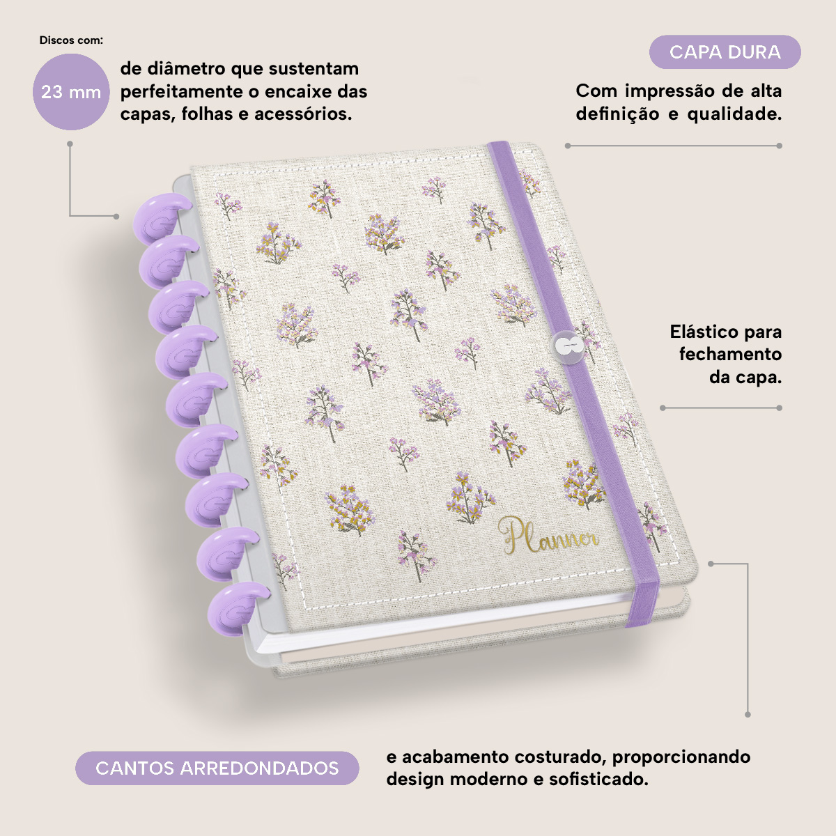 Iscool Disc Prime Planner Datado 2026 Entrepontos Floral Rosa e Lilás